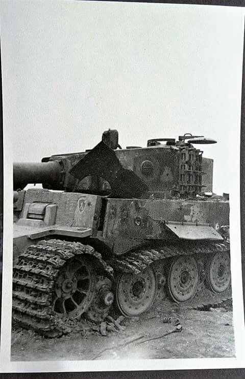 Пантера с очень необычной символикой. Не вермахт, не СС. Обездвижена и ствол пробит.