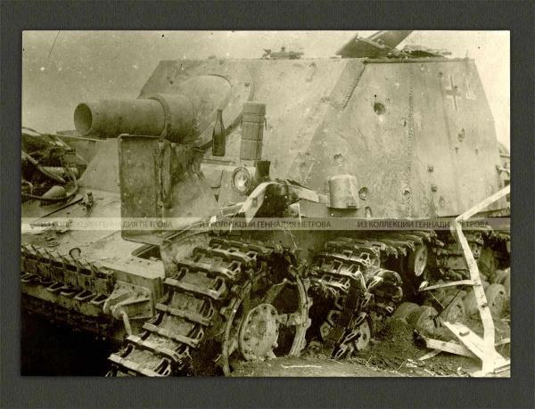 Ягдтигр. Сбита гусеница. покинут экипажем.