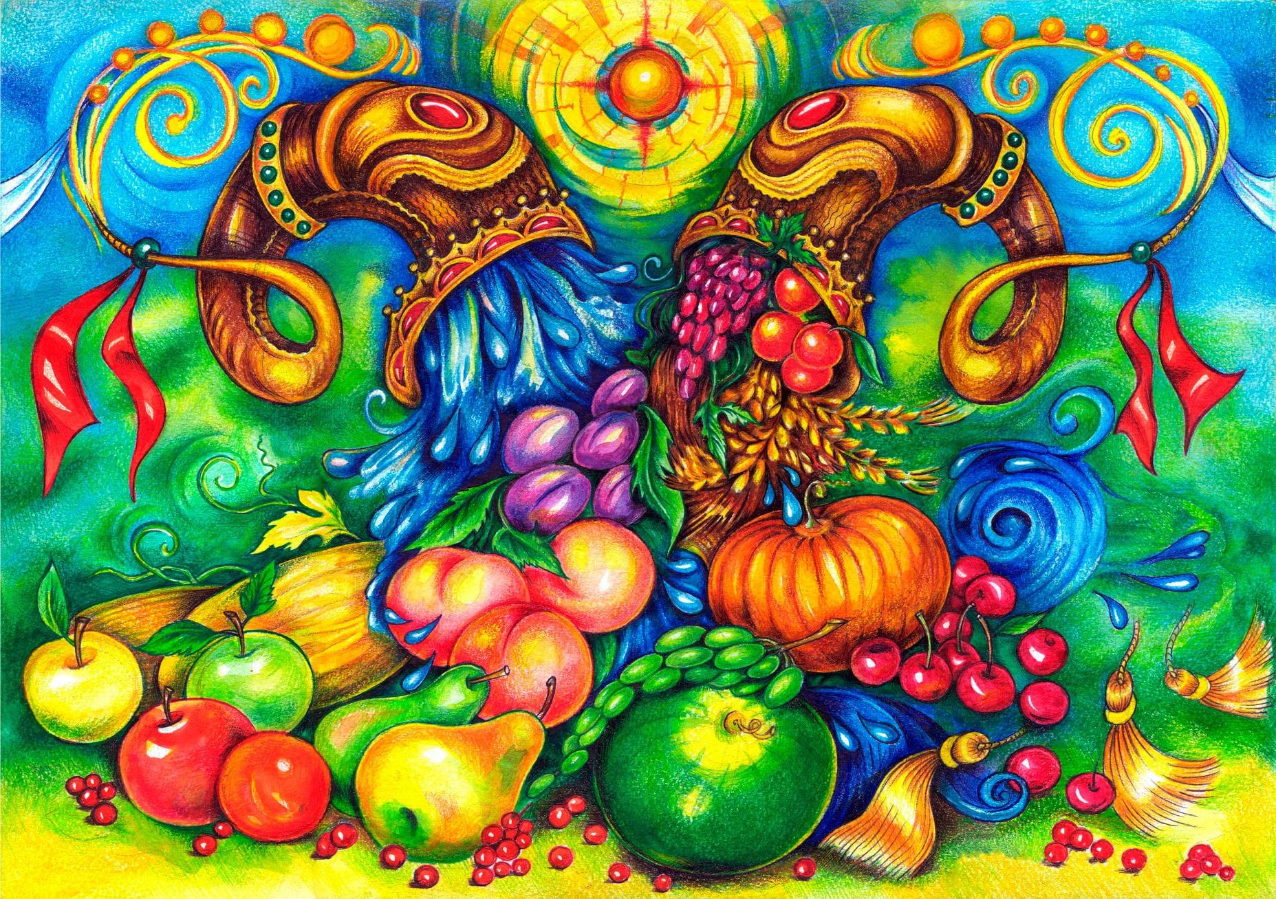 Вот и сегодня меня спас один такой лучик — чудесное творение моей замечательной подруги, талантливой художницы Анжелики Бакир (https://author.today/u/anzhelica_bakir), картина «Изобилие Жизни», подаренная к моему 44 дню варения.
