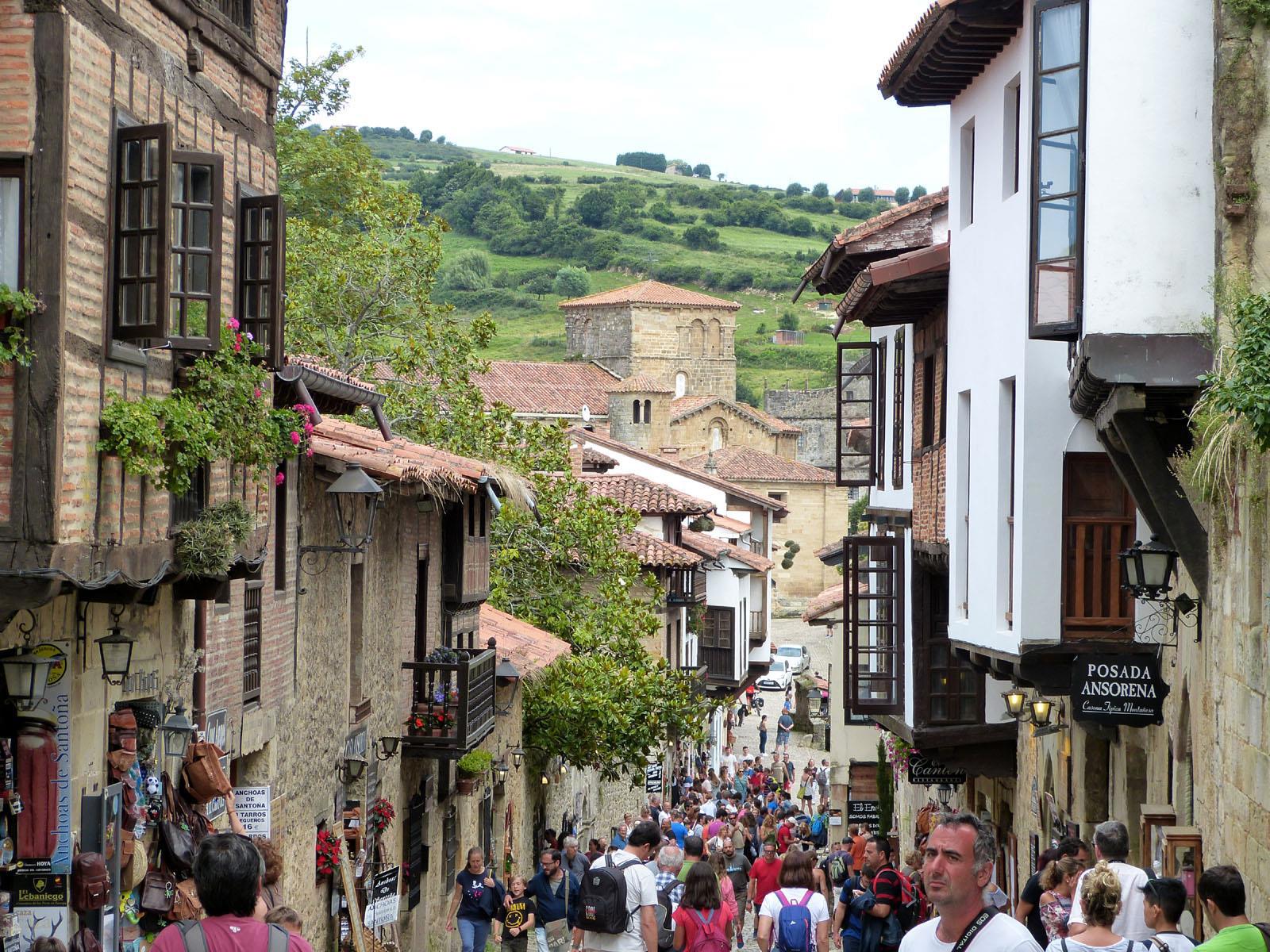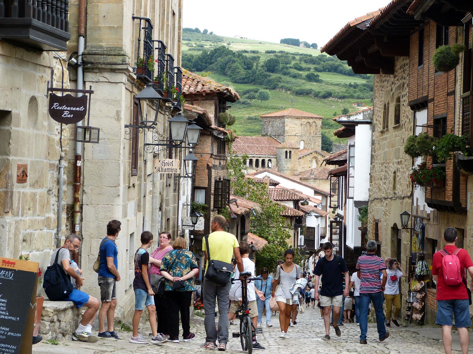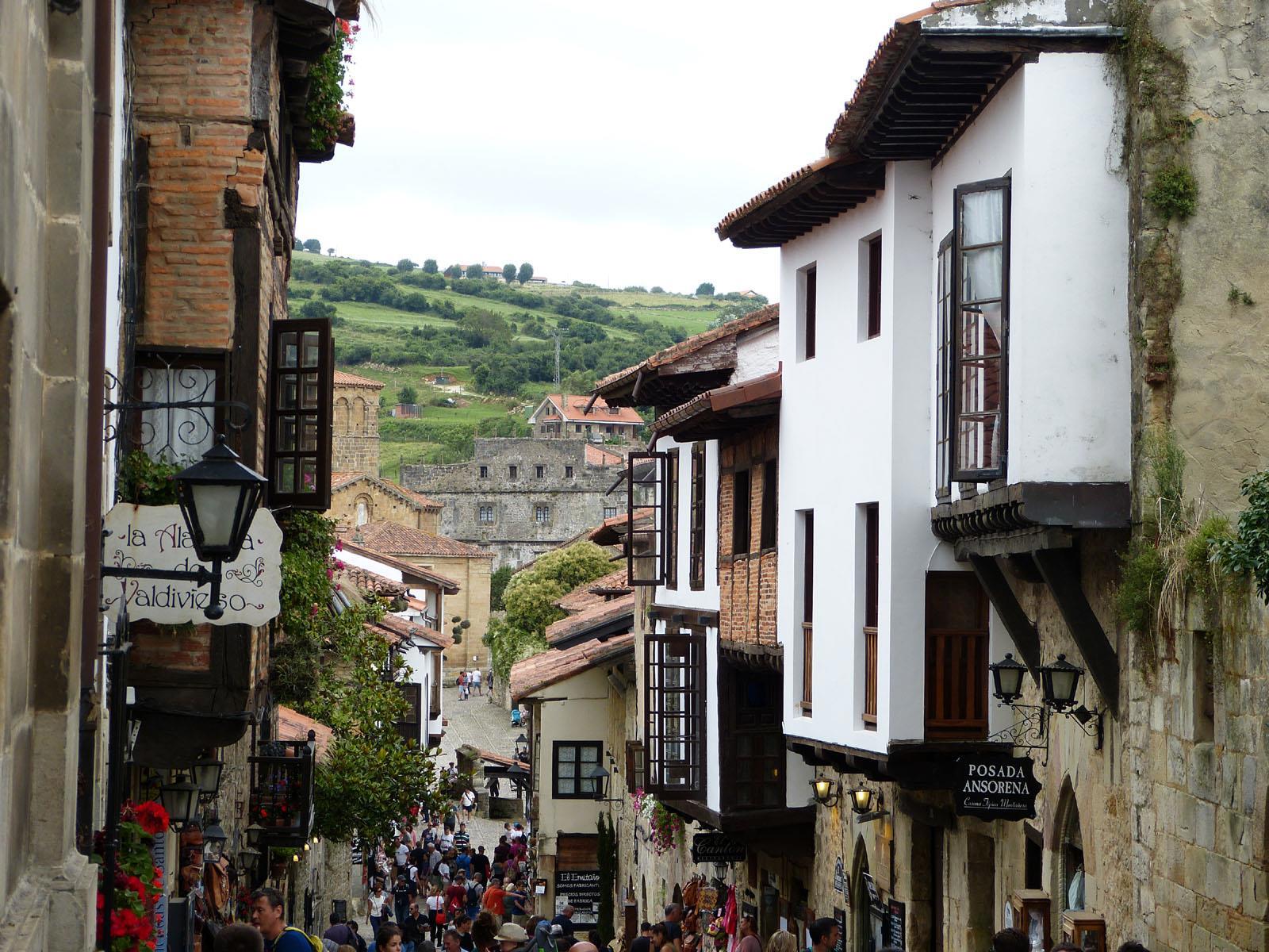 На этой фотографии прекрасно заметно, что Сантильяна-дель-Мар, определённо, не плоский город. Его главная улица спускается по склону холма, а на горизонте уже виден следующий холм.