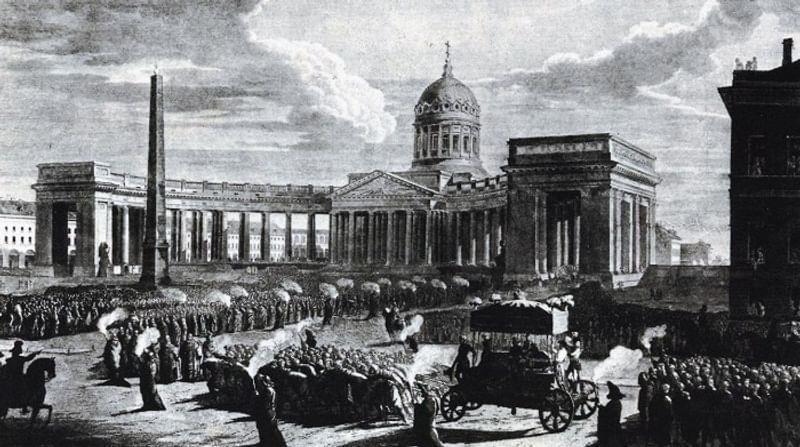 Иллюстрация: Похороны М.И. Кутузова. Гравюра М.Н. Воробьева.