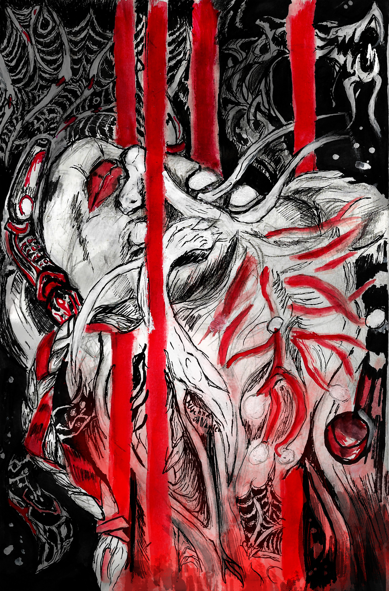 В дни, когда Хтон был ещё относительно молодым для исследования планом, она одна из первых организовала экспедицию в место, в последствие ставшее колонией и первым оккультным кругом. Но произошло несчастье на одном из ритуалов причащения воли и милости Великого Хтона. Один из членов круга оказался предателем из числа антимагиков-радикалов. Он заменил одну из важнейших рун, необходимых для ритуала, вставив другую, но с начертанной на ней срамным словом. А непосредственно на самом ритуале вместо общей молите в трансе изрыгал ругательства и поношения в адрес Хтона. Хтон был безжалостным и ну очень обидчивым. Он услышал мольбы об единении с ним и исполнил их с присущим ему саркастичным садизмом. В итоге вместо вполне банального пополнения энергетических резервуаров, все тела живых, что находились в радиусе ста метров от Серебряной Залы, в которой проводился обряд, были перекручены и срощены друг с дружкой, обзаведясь десятком-другим мутаций и голосами в голове. К счастью, лишь немногие погибли или потеряли человеческий разум. В том числе, спаслась и сама Аэрахна, хоть и потеряв человеческий вид, воплотившись в химерическую тварь, но она сохранила при этом человеческий рассудок, потеряв лишь толику былой человечности, бывшей и так не слишком великой. К счастью, общество не отторгло несчастных - отнюдь, они стали мучениками в глазах науки и получили финансирование и посильную помощь от добровольцев, что и позволило отстроить первые цитадели алого мира...