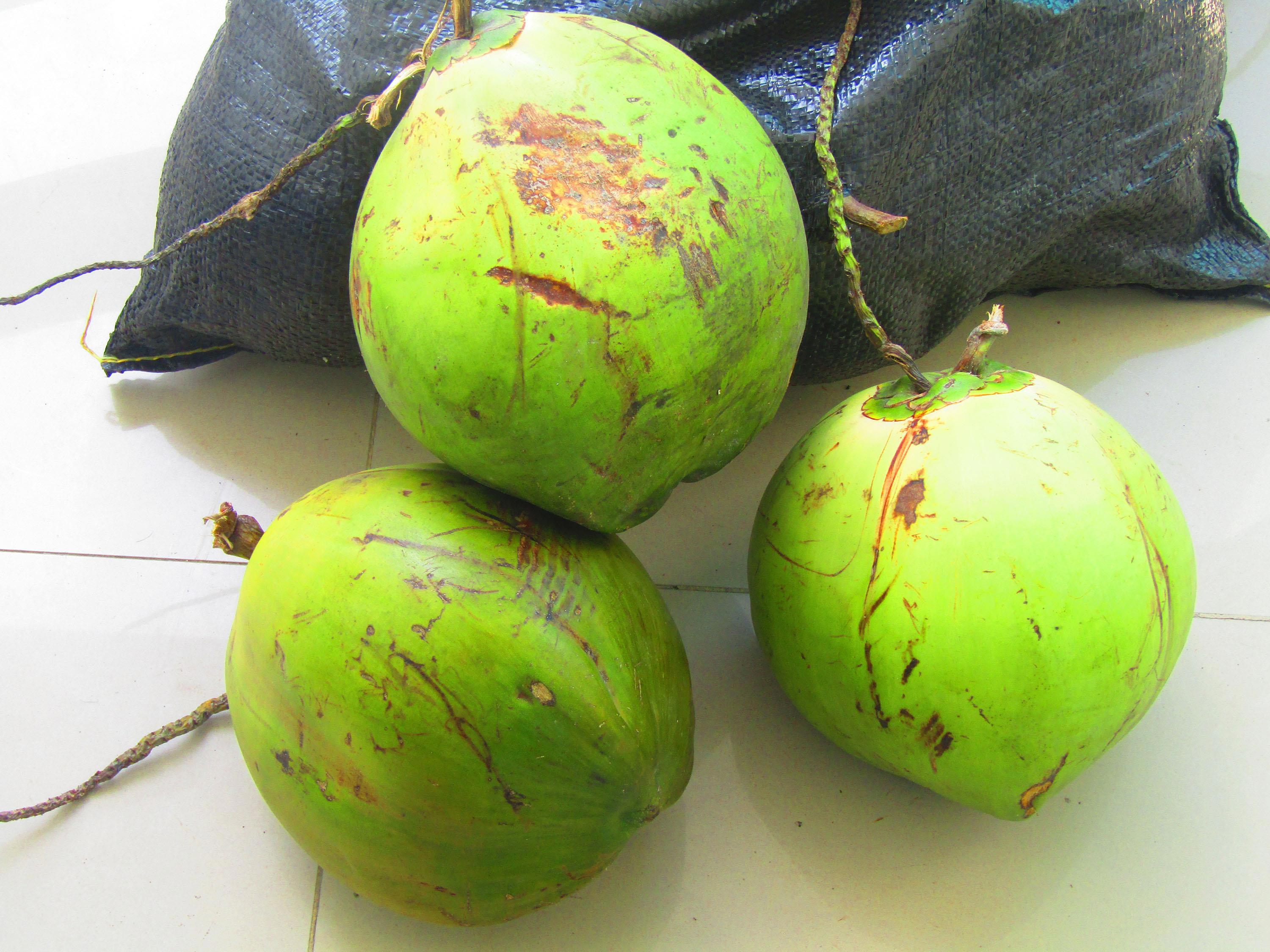 Кокосы бывают не только спелые волосатые на полках супермаркетов, но и недозрелые питьевые. Вот такие вот.)