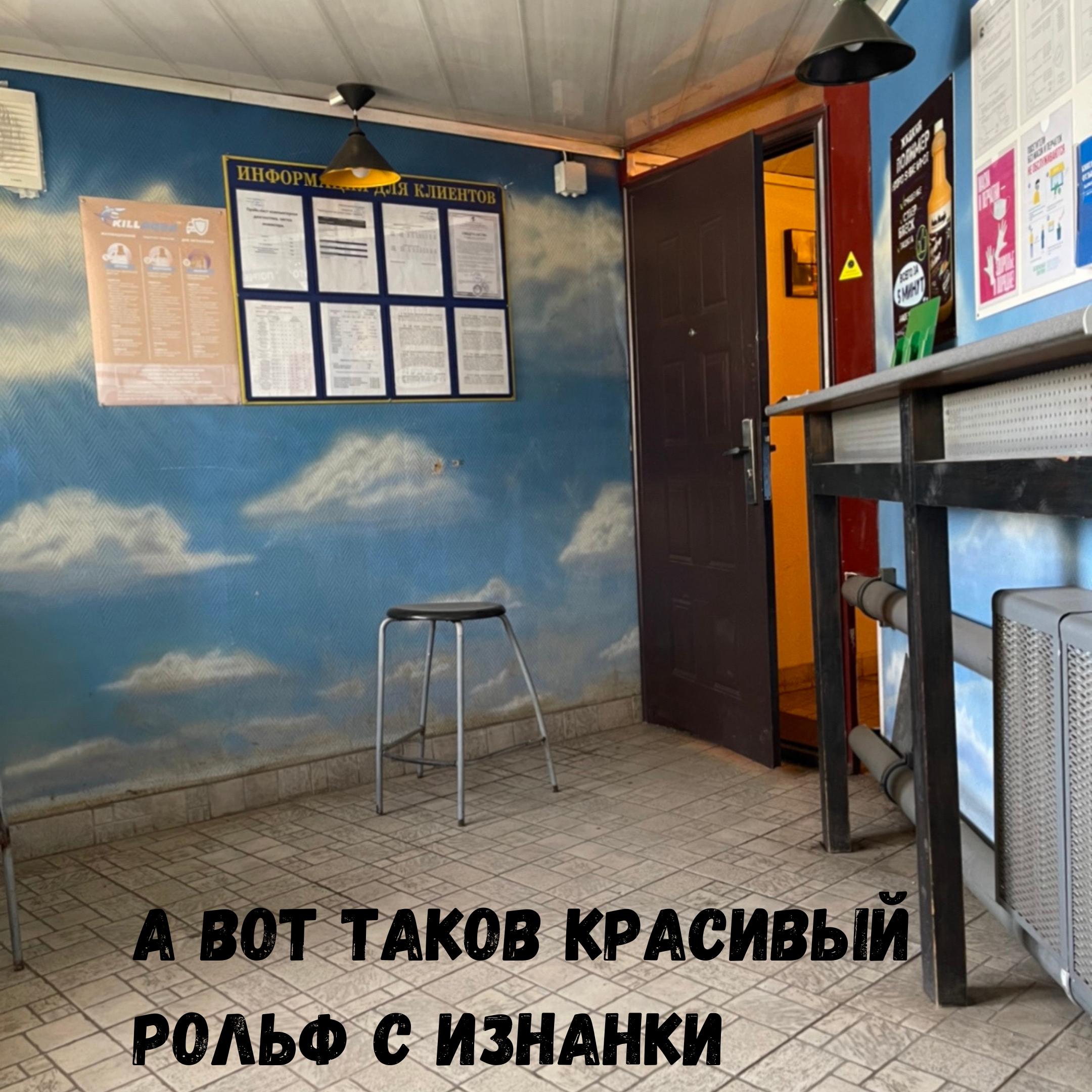 В понедельничек его тоже не оказалось на месте, и меня отправили “к партнерам” в гаражи(на фото их зал ожидания).