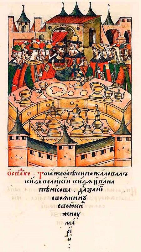 «Той же осенью великий князь пожаловал князя Ивана Пенкова, дал за него свояченицу свою княжну Марью». Лицевой летописный свод.