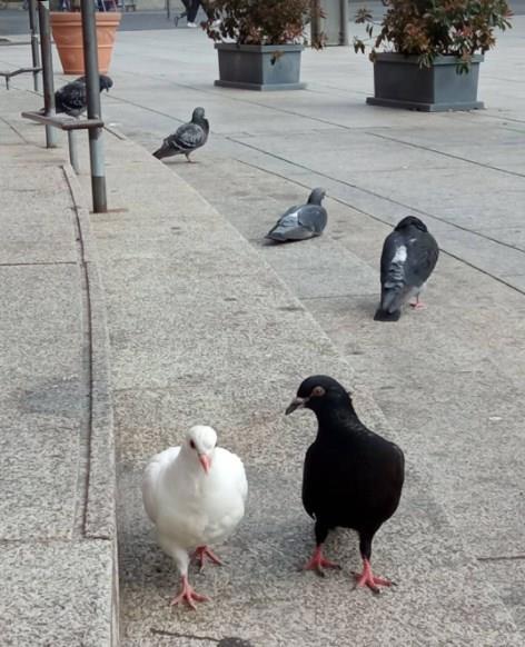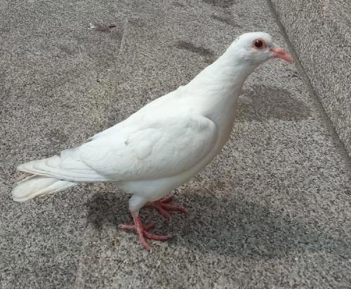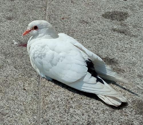 И тут прилетает ко мне белая голубка! Единственная белая среди серых прилетела ко мне дружить. Я её кормила булочкой с корицей, она даже научилась брать крошки прямо из пальцев)) А потом булка закончилась, и подружка ещё некоторое время ходила вокруг и заглядывала мне в глаза. Ещё она говорила со мной, попискивала, требовала крошки) Я вообще не знала, что голуби пищат!