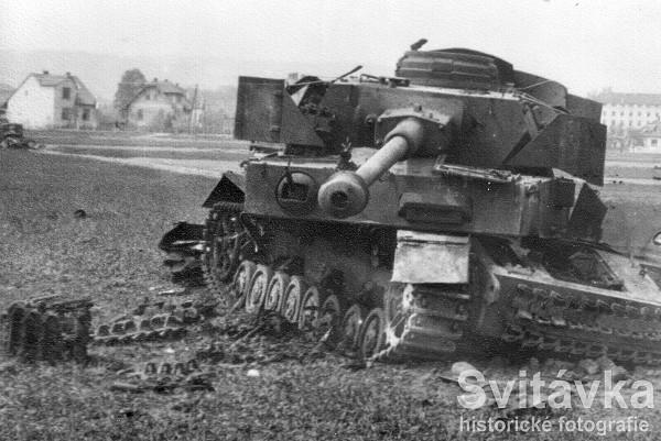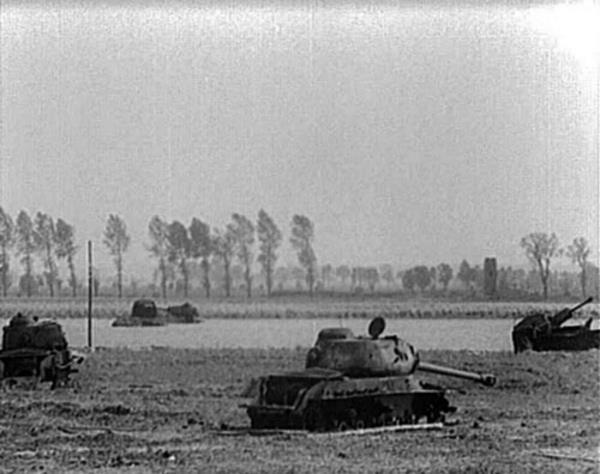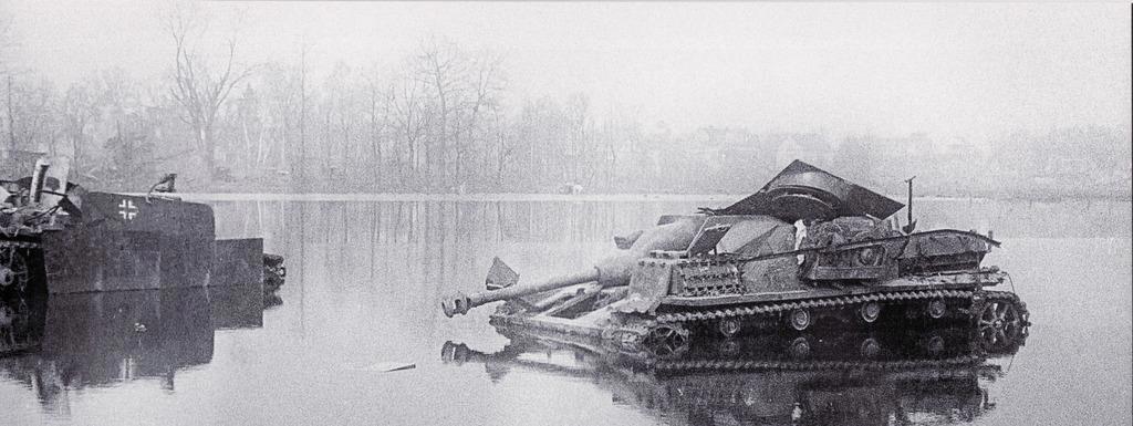 Наш сгоревший ИС у Зееловских высот. Подбитая дальше СУ-76 очевидно систему балансировки сохранила.