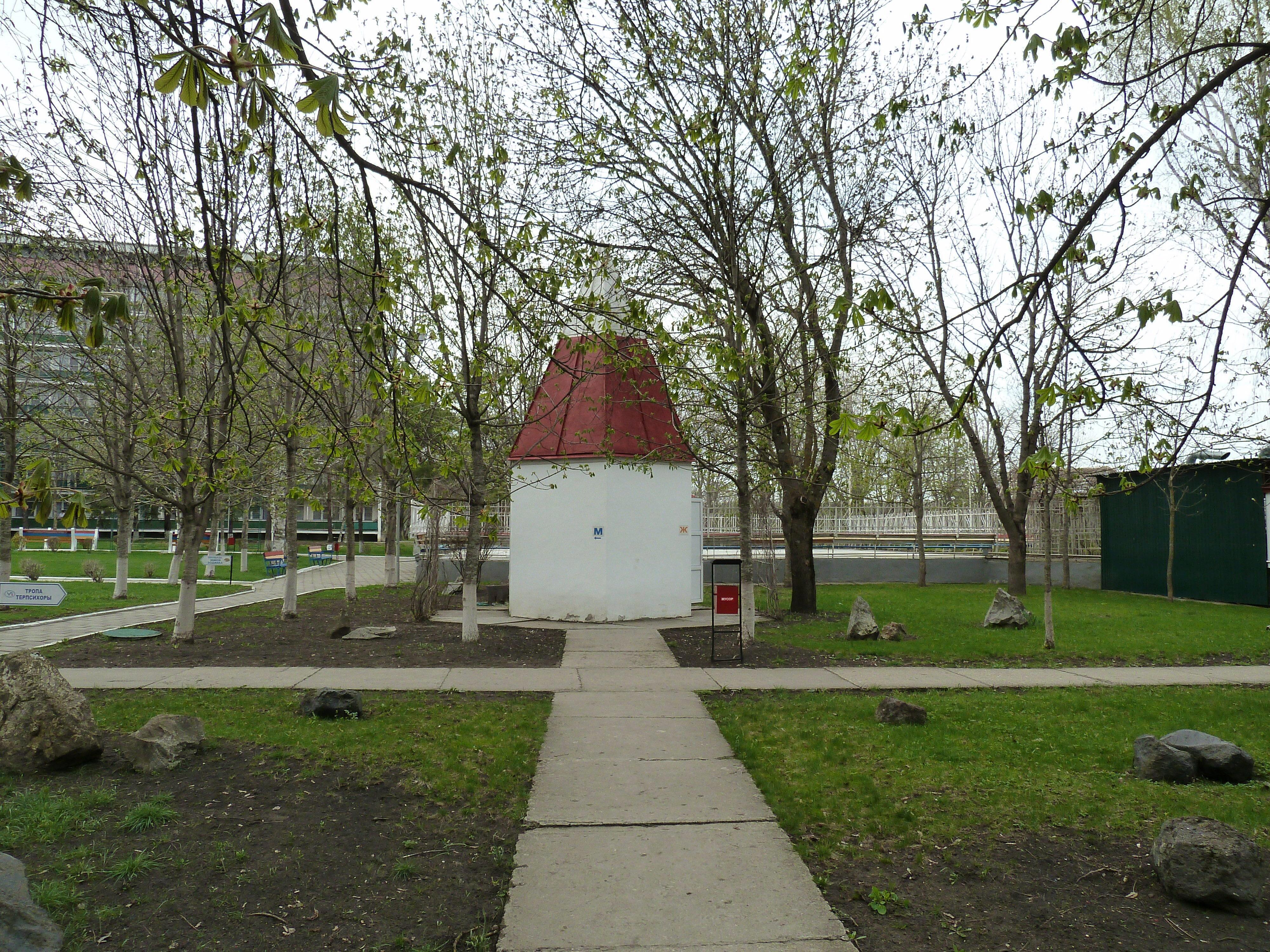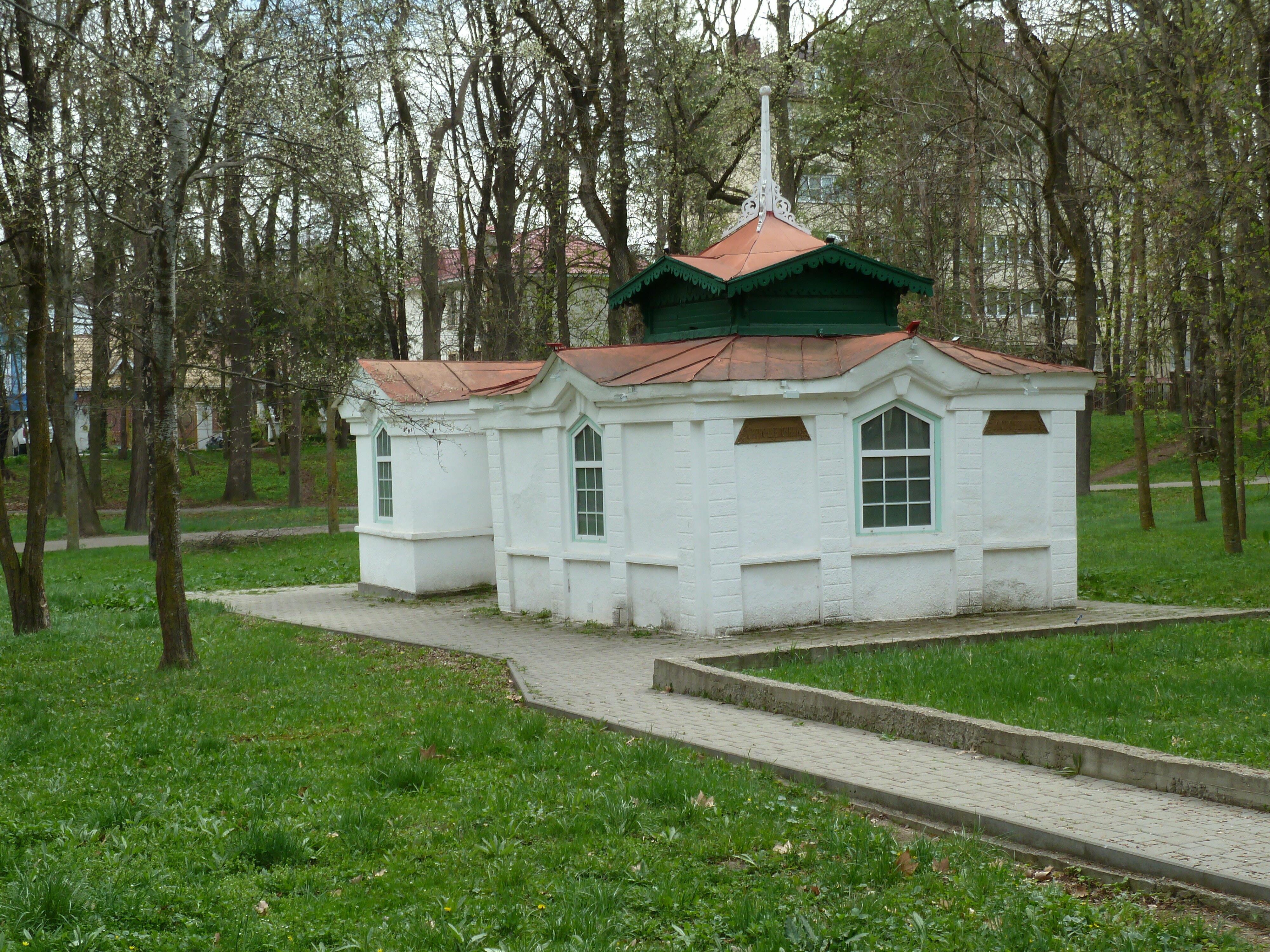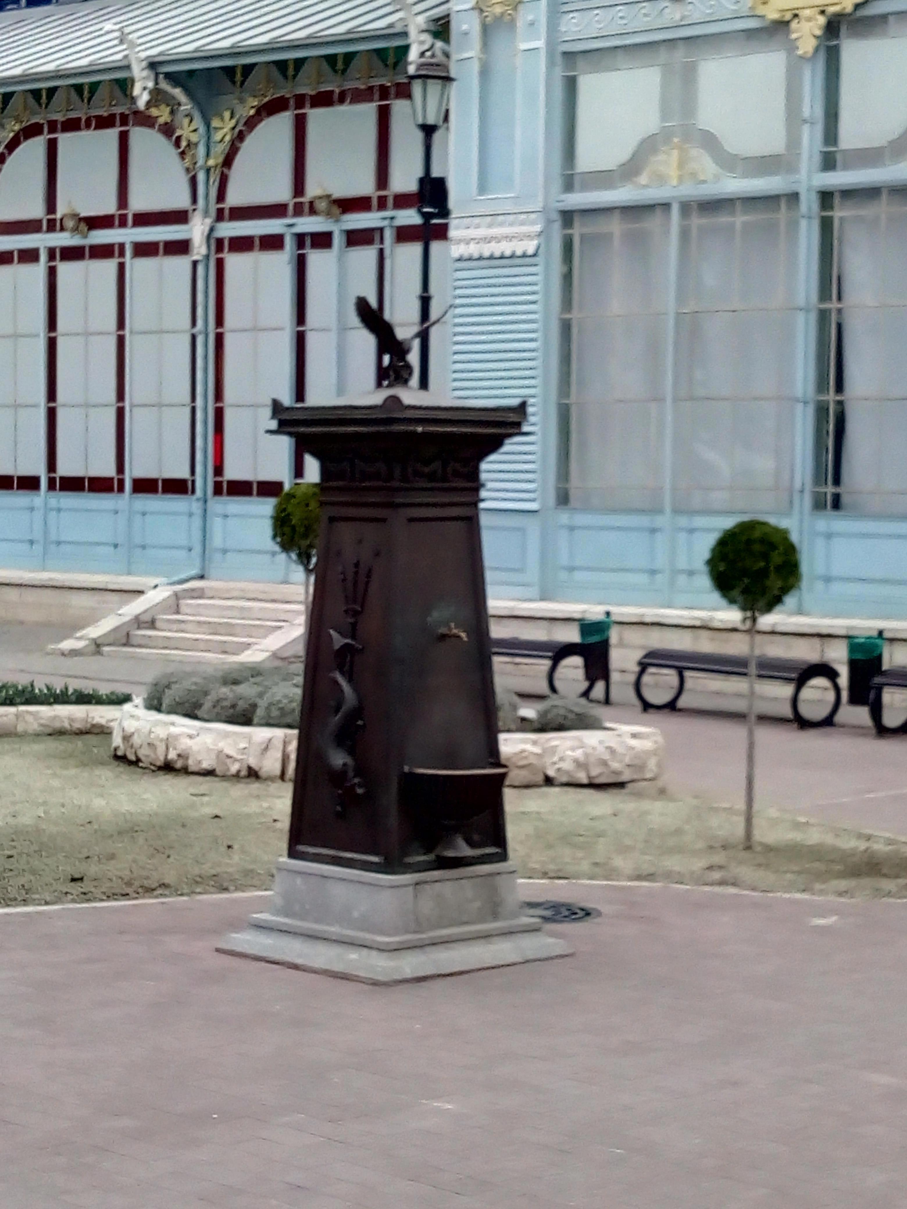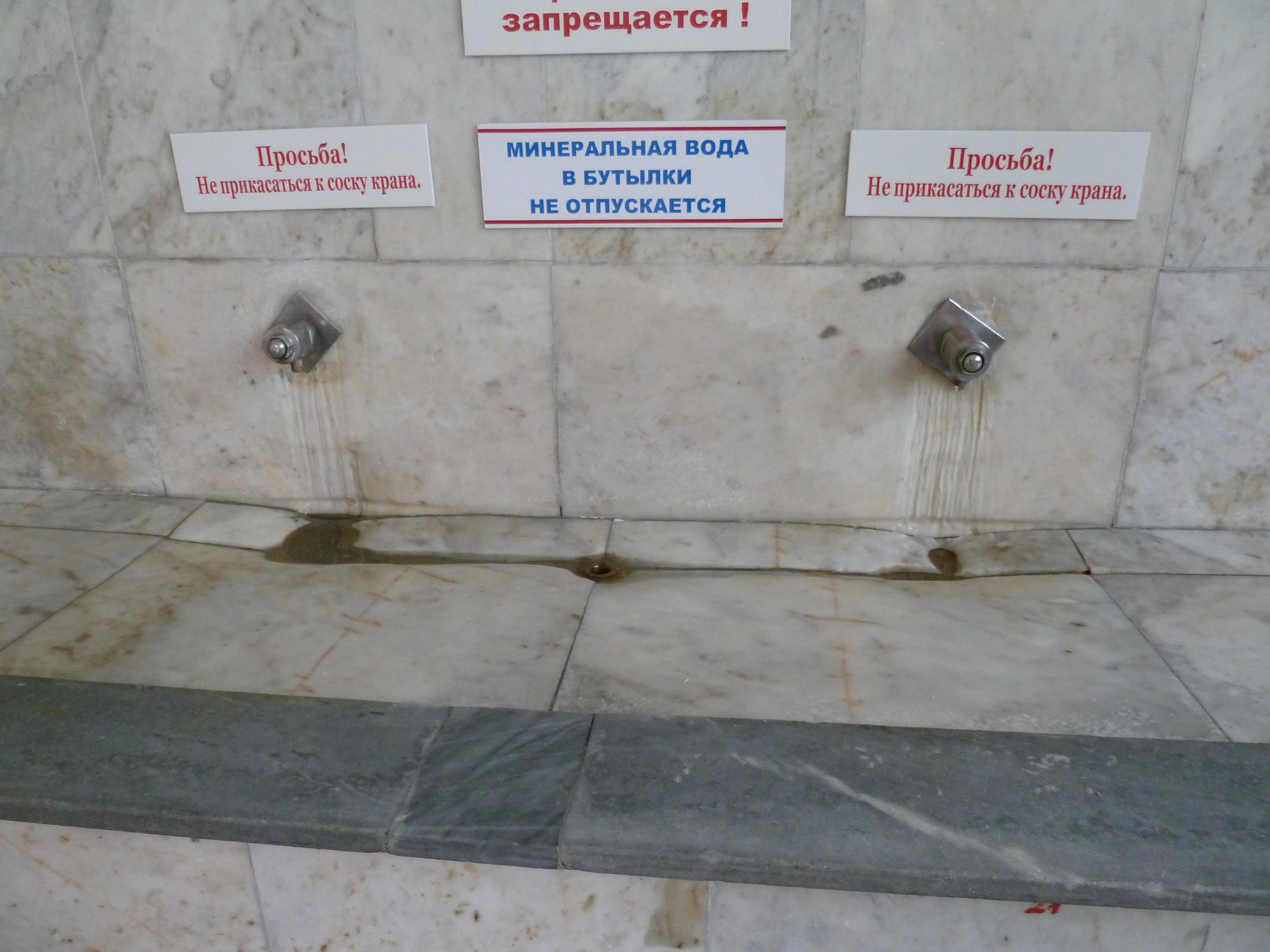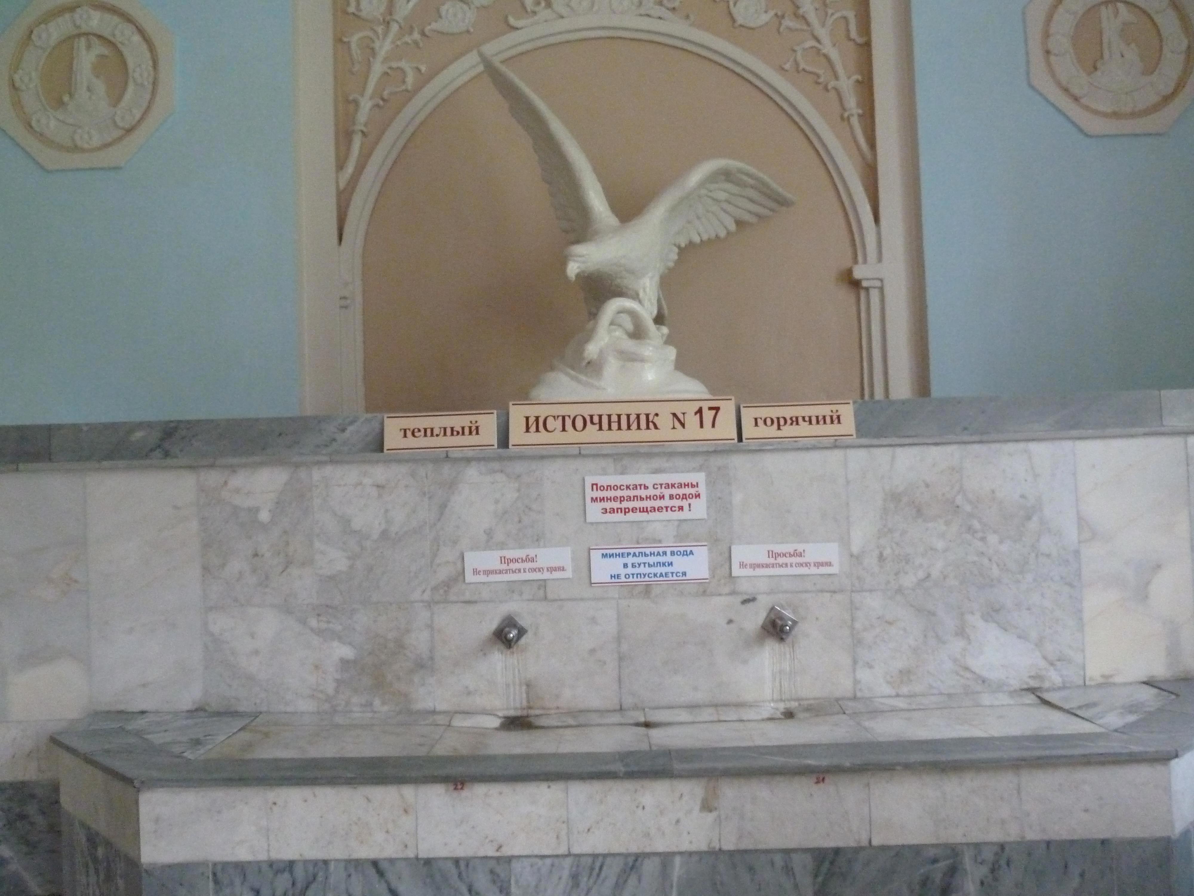 Бювет с водой из источника №17 настолько невзрачен снаружи, что этот даже забыл запечатлеть его вход. Зато внутри…