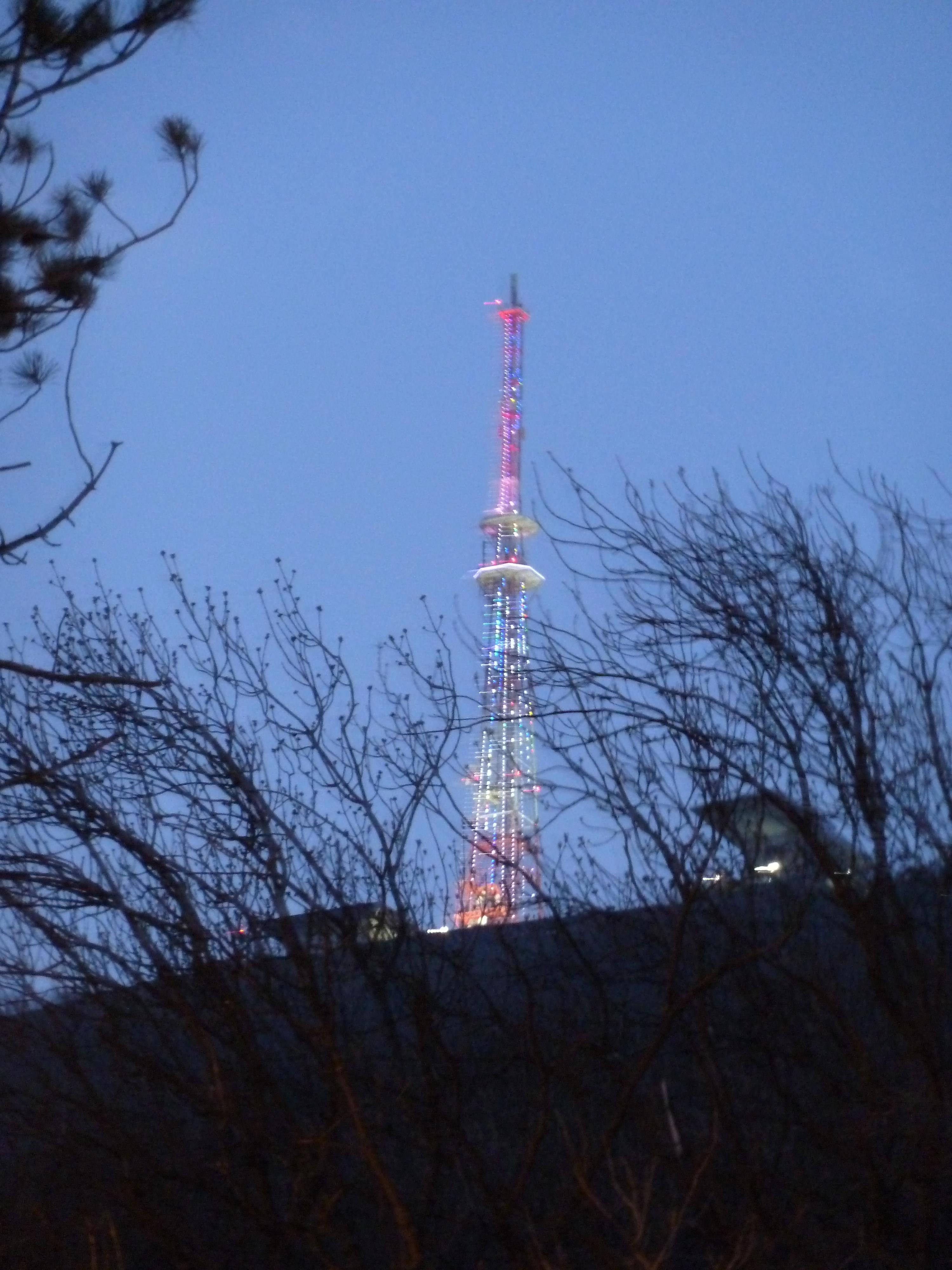 С него открываются прекрасные виды на город, особенно, когда огни уже зажгутся. Но нам было слишком страшно, чтобы разжать руки и взять фотоаппарат