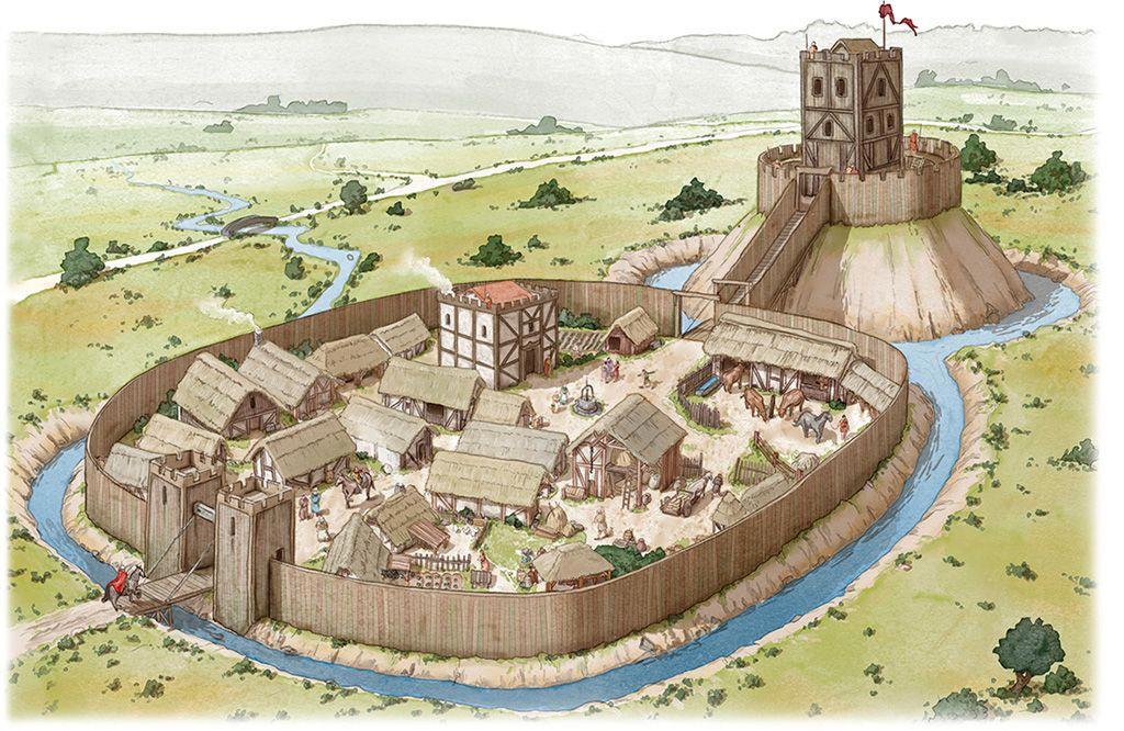 В средневековой Европе деревянные замки типа «Мотт и бейли» строились давно, и возводить их перестали только к концу XII века. «Мотт и бейли» – это такие временные укрепления, доставшиеся европейцам от римлян. Например, столица королевства Рохан из фильма «Властелин колец», а так же Вайтран из игры «Скайрим» были построены в таком же стиле. «Мотт и бейли» включал в себя: палисад (частокол по периметру), земляной вал и пару насыпных курганов, самый большой из которых венчал деревянный донжон. От них люди отказались всего за 250 лет до окончания средних веков! До этого неприхотливые деревянные бурги в течение 600 лет считались полноценными замками, а после XI века повсеместно соседствовали с каменными крепостями.