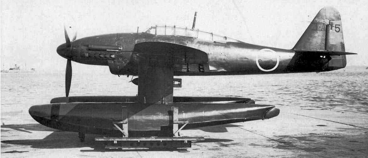 Так вот, каждая несла в своих ангарах аж три гидроплана типа М6А1 «Seiran». А каждый из этих гидропланов мог нести бомбы или торпеду весом 850 кг. Нести со скоростью около 450 км в час. Вот этот самолёт: