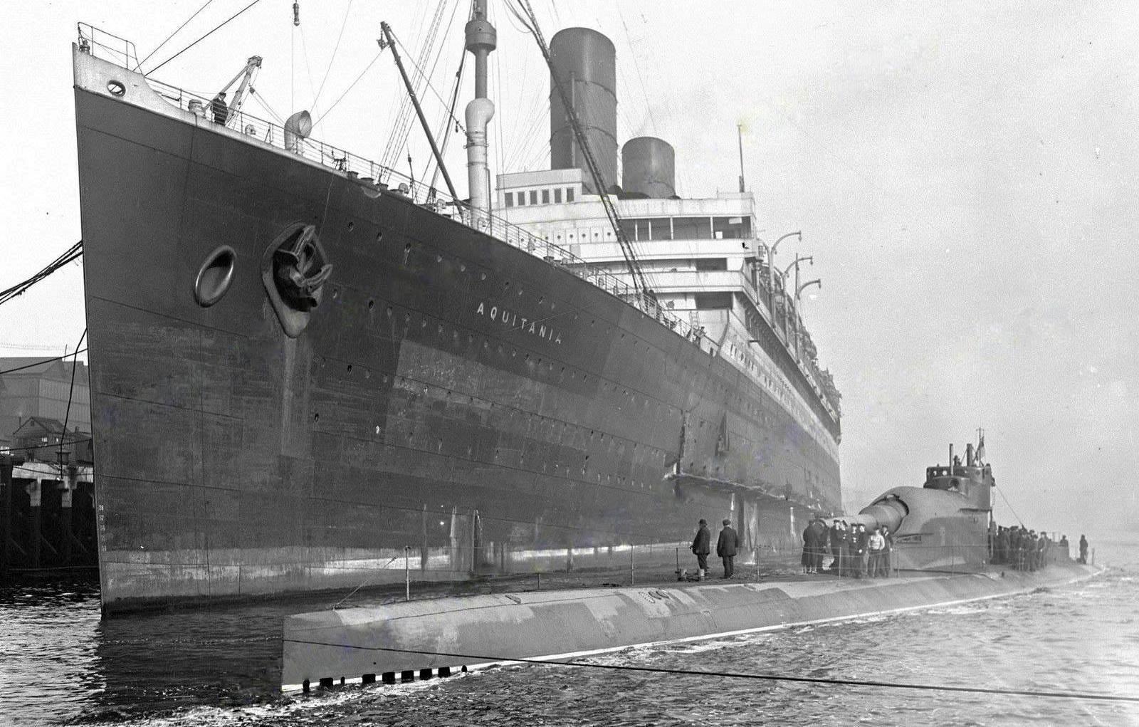 Начнём с ранних образцов. Наверное, правильнее всего первым действительно большим подводным кораблём можно считать построенную в 1916 году немецкую подводную лодку «Дойчланд» (Deutschland). Вот она, пузатенькая, у пирса: