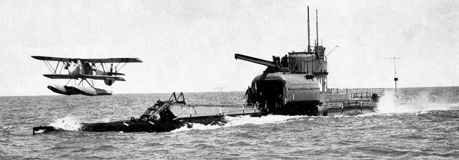 Эстафету строительства гигантских подводных лодок подхватили японцы, которые в тот период свято уверовали в свою несокрушимую великость. И, понятное дело, по примеру своих западных учителей, японцы решили расширять границы своих владений. А как расширять границы, если у вас нет чего-то самого большого? Вот... поэтому они построили два больших надводных корабля с большими пушками типа «Ямато» (про него и так много написано) и ещё целых три больших подводных лодки типа «Сен Току» (Sen Toku). И это были не просто подводные лодки, а даже всамделишние подводные авианосцы. Каждая из них несла в своих ангарах... вот, кстати, этот ангар в открытом положении: