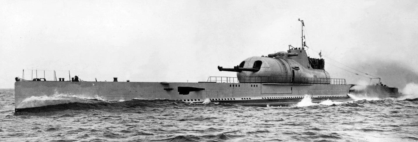 Вообще-то «подводный монитор» HMS M3 не был «единственным прегрешением» англичан в этом направлении. Идея стрелять из пушек с подводных лодок в то время крепко засела у них в мозгах. В 1925 году на воду была спущена подводная артиллерийская лодка известная в определённых кругах под кличкой «белая субмарина». В жизни она называлась куда скромнее – Х1 (не подумайте, что «хорошая»). Сами авторы определяли её назначение как «подводный крейсер для надводного боя» (во как!). Для этого самого боя на неё установили две башенные двухорудийные установки с пушками калибра 132 мм. Туда, говорят, вообще насовали столько новаций, что она никаких боевых задач выполнять не могла совсем – только ремонтировалась (это как американцы сейчас со своим «продвинутым» Фу-35 страдают). Кроме пушек довольно мудро на лодку поставили шесть торпедных аппаратов. Вот эти 110 метров стальных чудес: