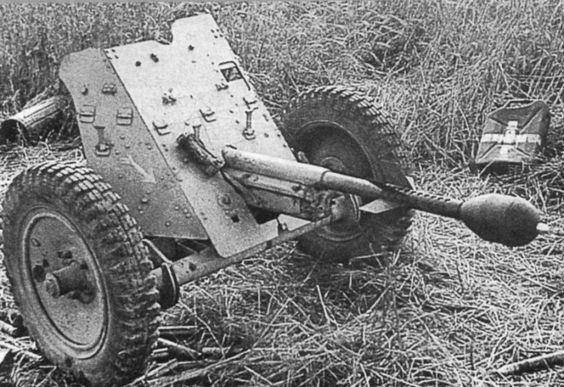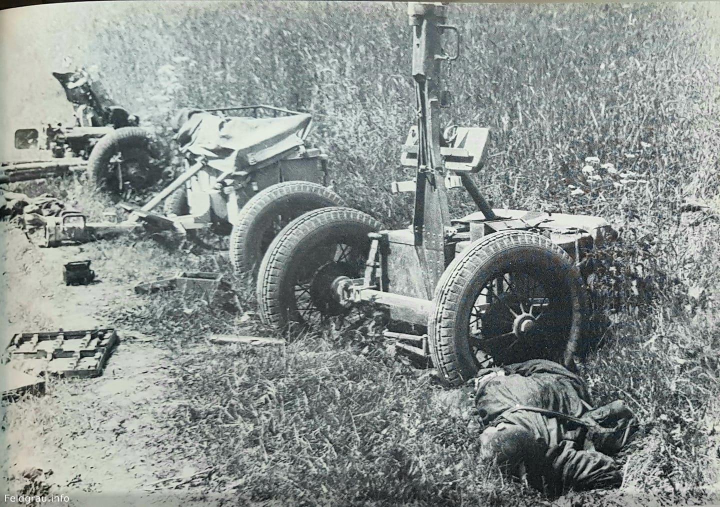 Наша сорокопятка уничтоженная на марше. Судя по второму зарядному ящику - не одна.