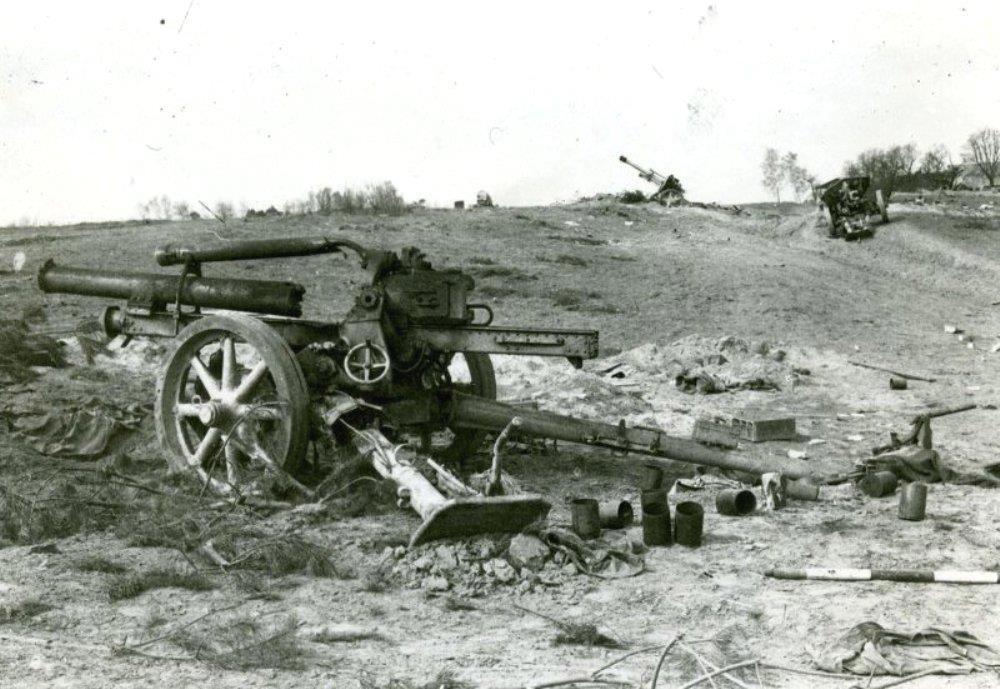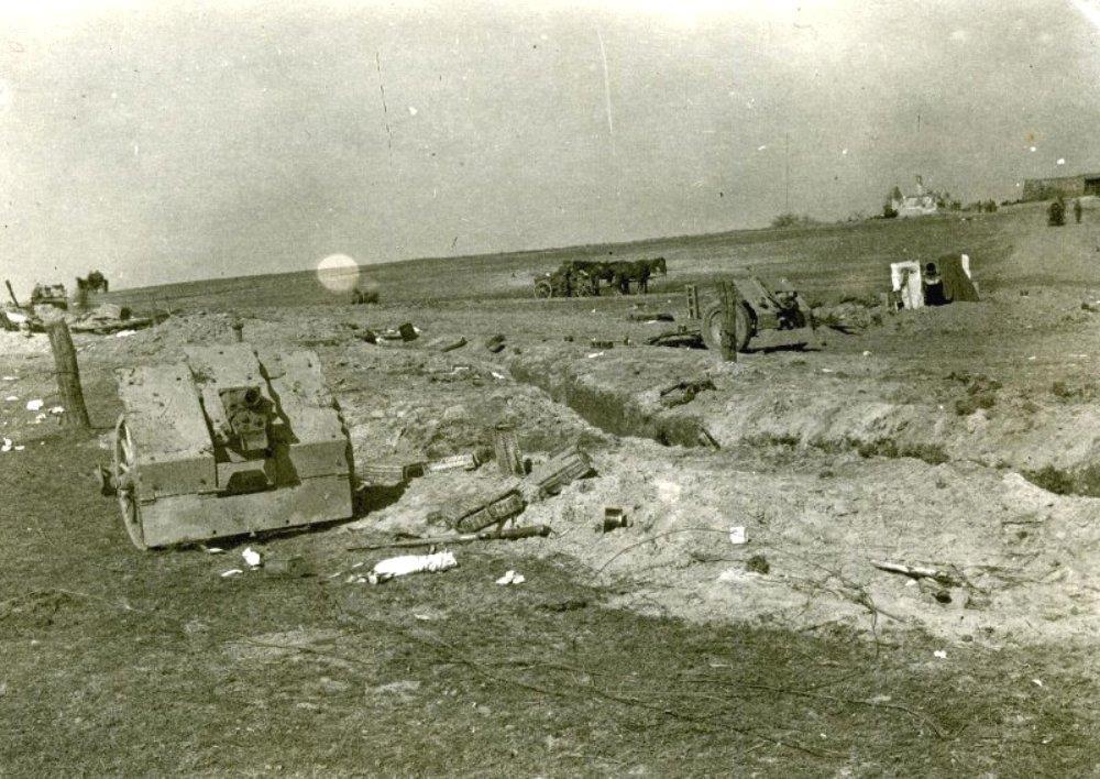 Батарея легких пехотных немецких пушек-гаубиц 75 мм. окопаться не успели.