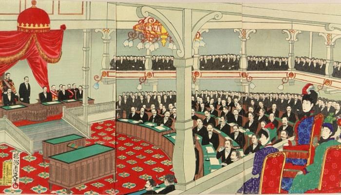 Понимая, что на одних штыках не усидеть, император Мэйдзи немало времени уделял сплочению гражданского общества, в результате чего была провозглашена «Конституция великой Японской империи» (Дай Ниппон тэйкоку кэмпо), вошедшая в историю как «конституция Мэйдзи» и с большой помпой обнародована 11 февраля 1889 г.