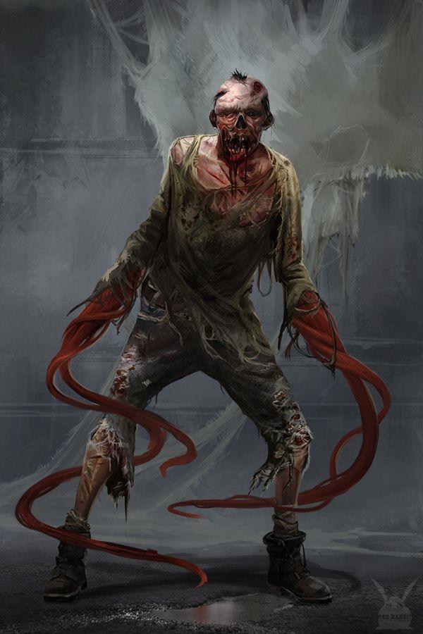 Сквозь прорехи в когда-то модной рубашке проглядывала потемневшая мертвая плоть с рванными воспаленными ранами, сочащихся гноем и черной сукровицей. Лицо ожившего трупа было частично кем-то обглодано, желтые зубы демонстрировали неровный частокол, через рваную щеку и отсутствующую верхнюю губу. Самое интересное, что меня удивило в мертвеце и заставило напрячь ягодицы, это отсутствие рук. Точнее руки то были, но только до локтевого сустава, дальше они странным образом трансформировались в гибкие щупальца, состоящие из мышц, сухожилий и какой-то серой массы. Голени монстра кто-то обгрыз практически до костей, однако отсутствие мышечной ткани явно не доставляло никаких неудобств при ходьбе. Чумной зомбак стоял на ногах твердо и уверенно. Завершающим штрихом были несколько громко жужжащих мух, вьющихся над лысым черепом. Время от времени, садящихся в одну из многочисленных подгнивших ран на голове хозяина.