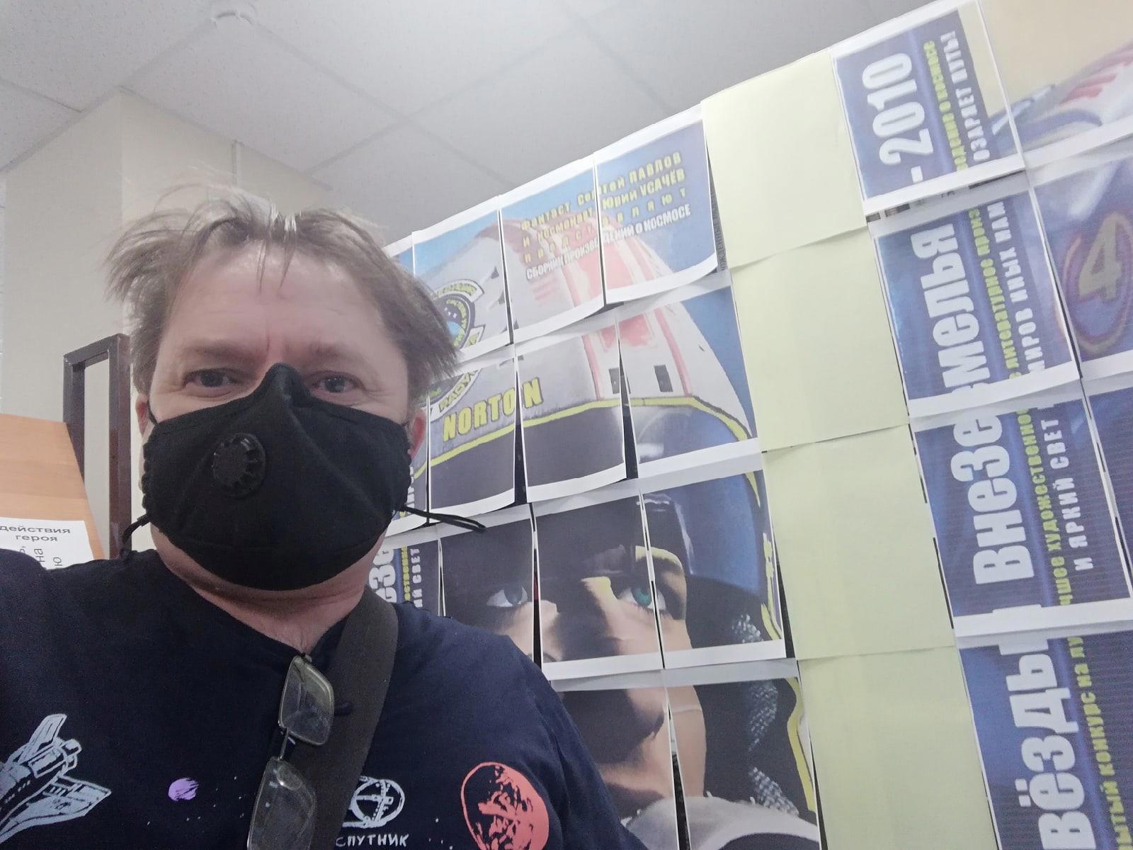 Мое место оформили просто фантастично — сделали большой баннер из обложек сборников «Звезды внеземелья» — это были первые публикация в России.