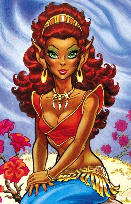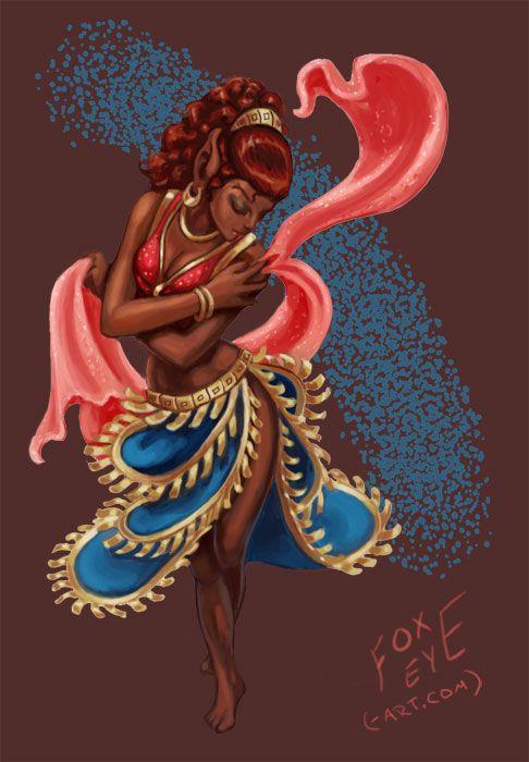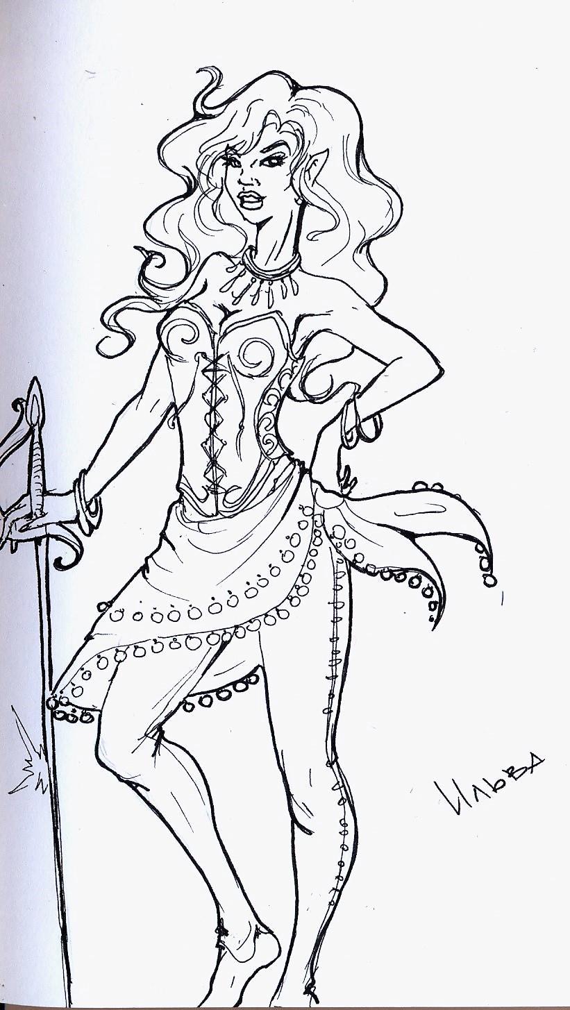 Супруга этого косматого типа, темпераментная эльфийка Ильва. Образ вдохновлён, как ни странно, очень мирным и нежным персонажем - целительницей Литой из обожаемой мною "Саги о Лесных Всадниках", художников Венди и Ричарда Пинни. От неё взята смуглая кожа и особая красота лесных эльфов. Артов с Литой в Сети больше, ну и мой арт опять же.