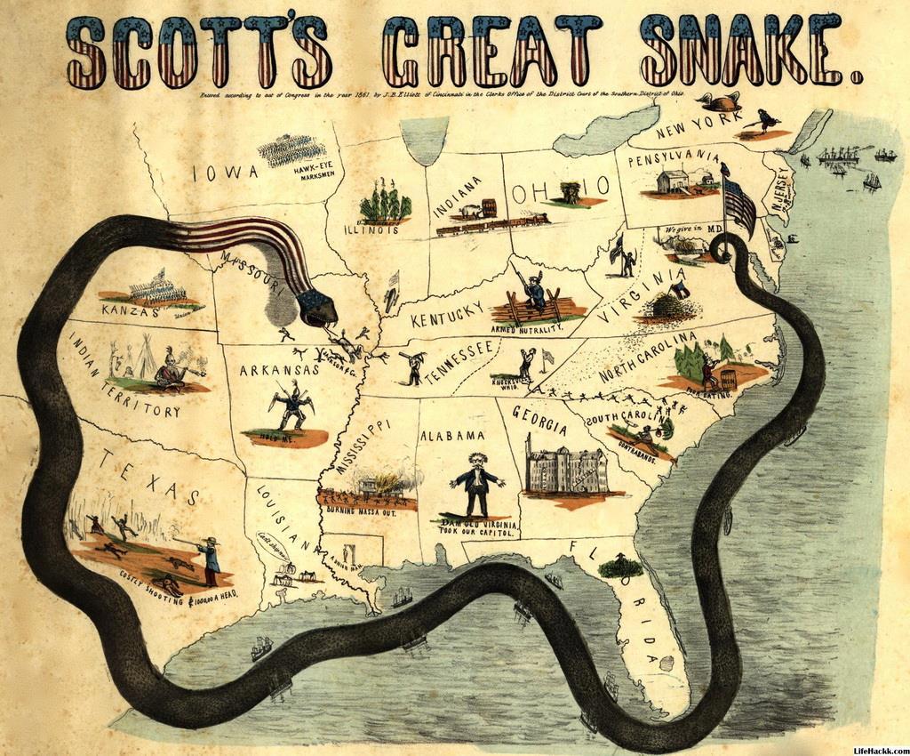 Морской министр Уоллес первоначально намеревался не штурмовать южные порты, а лишь «закрыть» их, запечатать так, чтобы устранить всякое постороннее вмешательство или возможность покинуть их для военной или торговой миссии. Именно он предложил Линкольну план «Анаконда». Этот план состоял в полной блокаде всех без исключения морских портов Конфедерации, уничтожению и захвату тех немногих торговых кораблей, что остались у Юга и предотвращению любой торговли мятежников с сочувствующей им Европой.