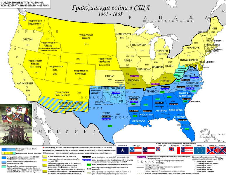 В свою очередь поддерживавшая Юг администрация последнего перед войной президента Бьюкенена, довела дело до следующего состояния: флот был занят за границей, суда, оставшиеся дома, по большей части разоружены или отправлены в ремонт, пушки, оружие и боевые припасы были хитроумно переведены в южные арсеналы. Наконец, сухопутная армия была разбросана на западе страны.