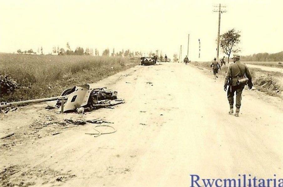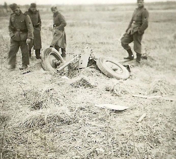 Тридцатьчетверка расплющила и была подбита другими ПТО. Тут меня убеждали, что снимки делали только тыловики. Вот наглядно - бой кончился, танк догореть не успел - а вот уже и фото.