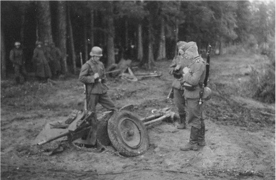 Автор: Николай БергНемецкие противотанковые орудия, раздавленные танками.