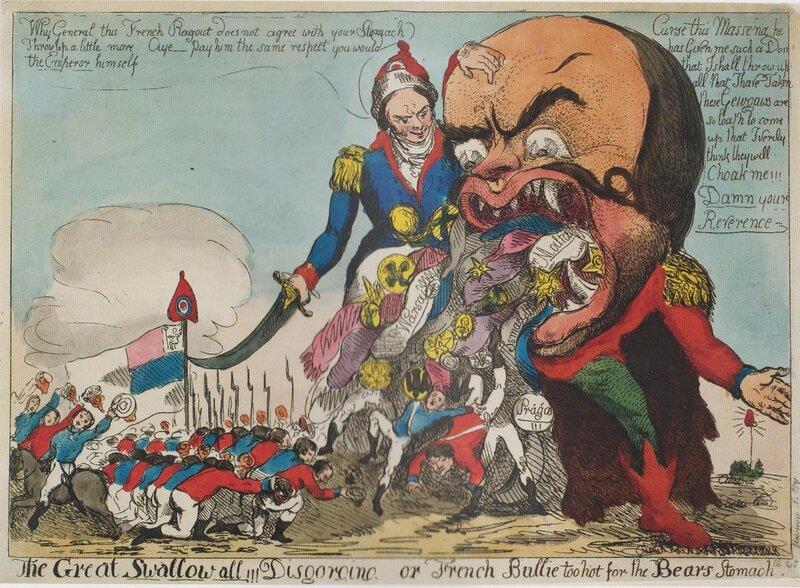 Генерал Массена заставляет Суворова извергать съеденных французов (а заодно ордена с надписями на лентах "Варшава", "Прага", "Измаил", "Мальта" ) со словами: "Как же так, генерал, неужели ваш желудок отказывается принимать это французское рагу? Извергните еще немного..." и, обращаясь к солдатам: "... выкажите ему такое же уважение, какое вы оказали бы и самому Императору".