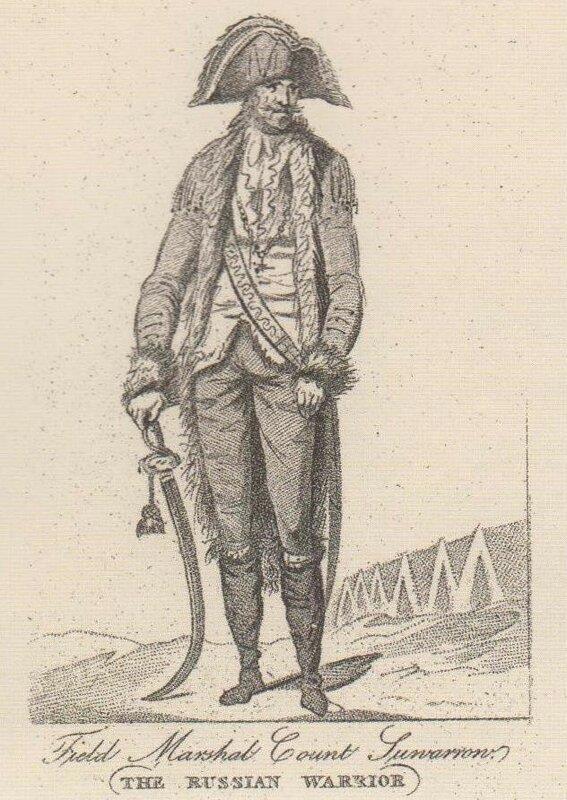 После подвигов Суворова лондонской публике стало интересным, как он выглядит. Издатели принялись выпускать его "портреты".