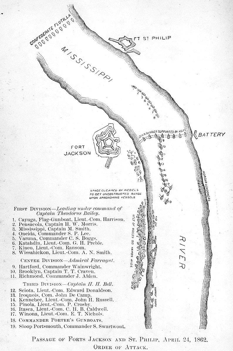 24-го апреля решилась судьба не только Нового Орлеана, но и всего противостояния на море между США и КША. Следуя предосторожностям, Фаррагут передал командование первой эскадрой капитану Бэйли, сам же принял командование второй дивизией.