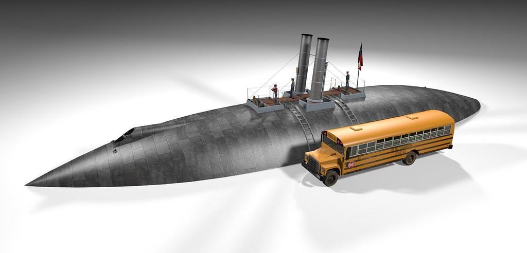 ("Манассас" для сравнения рядом с самым обычным автобусом. Точная работа американских реконструкторов. Натурально "Наутилус" из романа Жуль Верна)