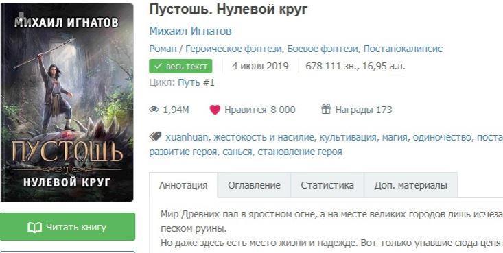 Про Пустошь Игнатова я тоже уже писал, одна из лучших серий в жанре уся, так что купить давно планировал - чтобы можно было на примере показать кому-то что это такое. Чего стоит тот факт, что вставляя ссылку я отметил у него ачивку - 8к лайков.