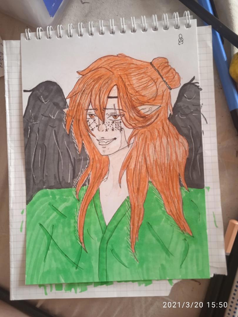 Автор: Lieyra SinTerraМоя подруга считает, что Тэн должен выглядеть так (см. изображение ниже). Только она подзабыла, малость, что Тэн - теневой демон и подобное не носит, да и к крылатым никакого отношения не имеет...рисунок пользовательницы вк https://vk.com/ksenasobakyno