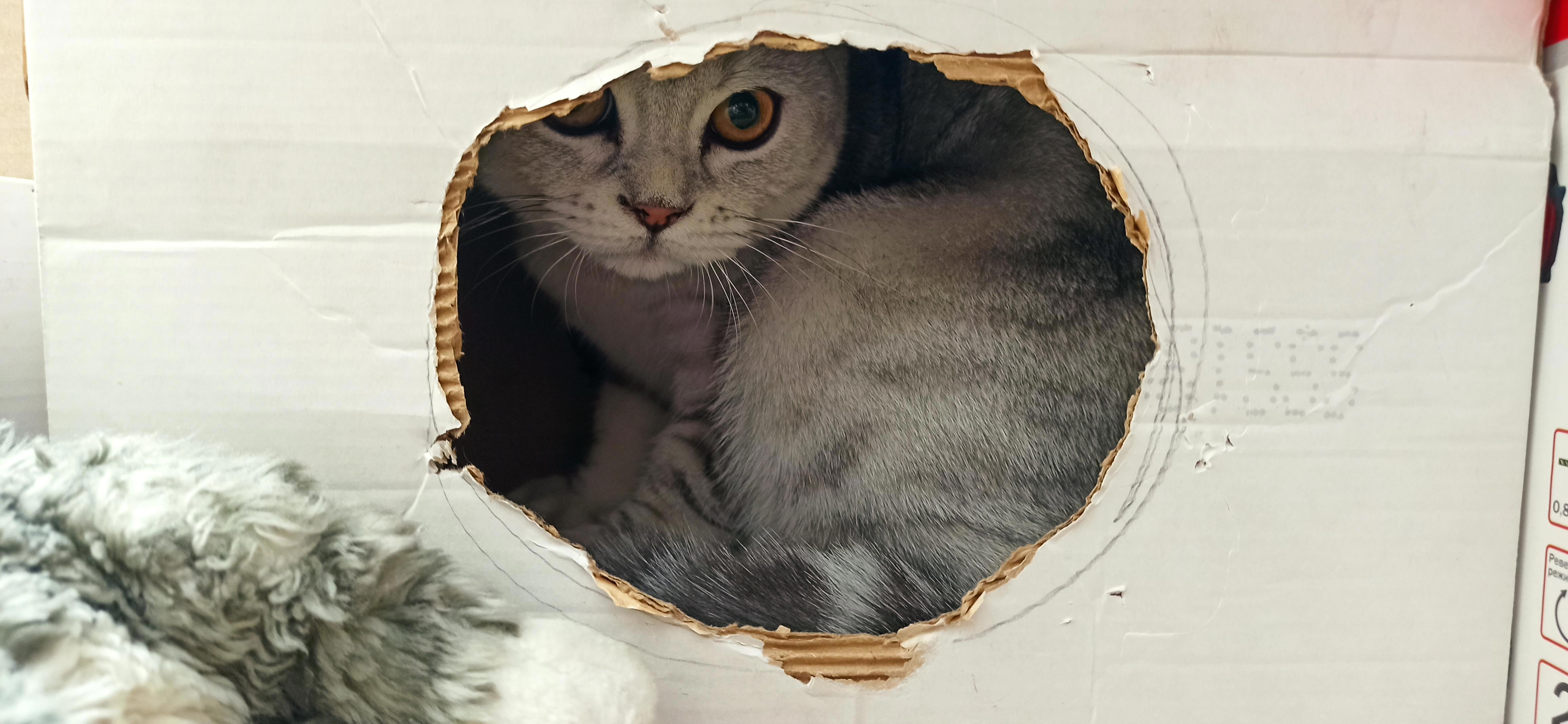 Любит пакеты, коробки и таскать у дочери резинки для волос и прятать их под мебель.