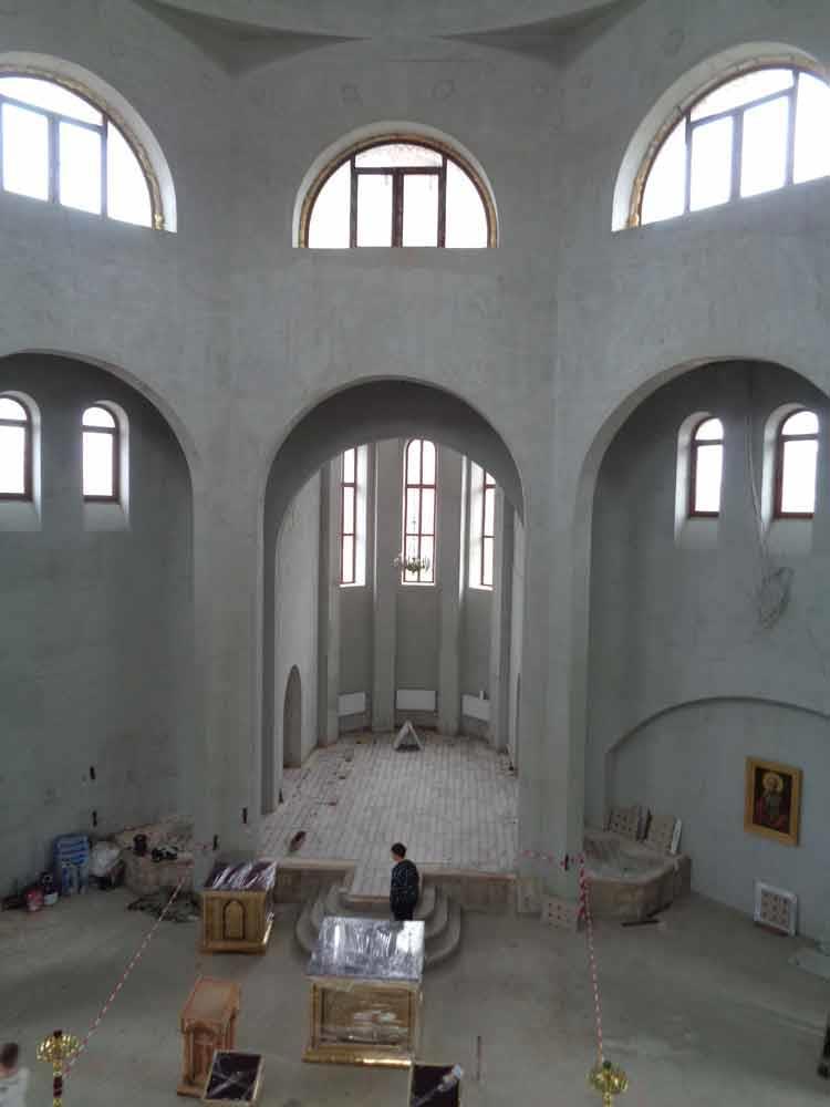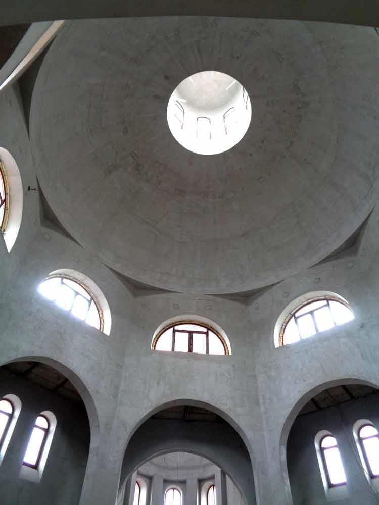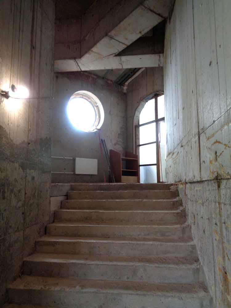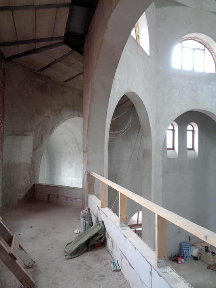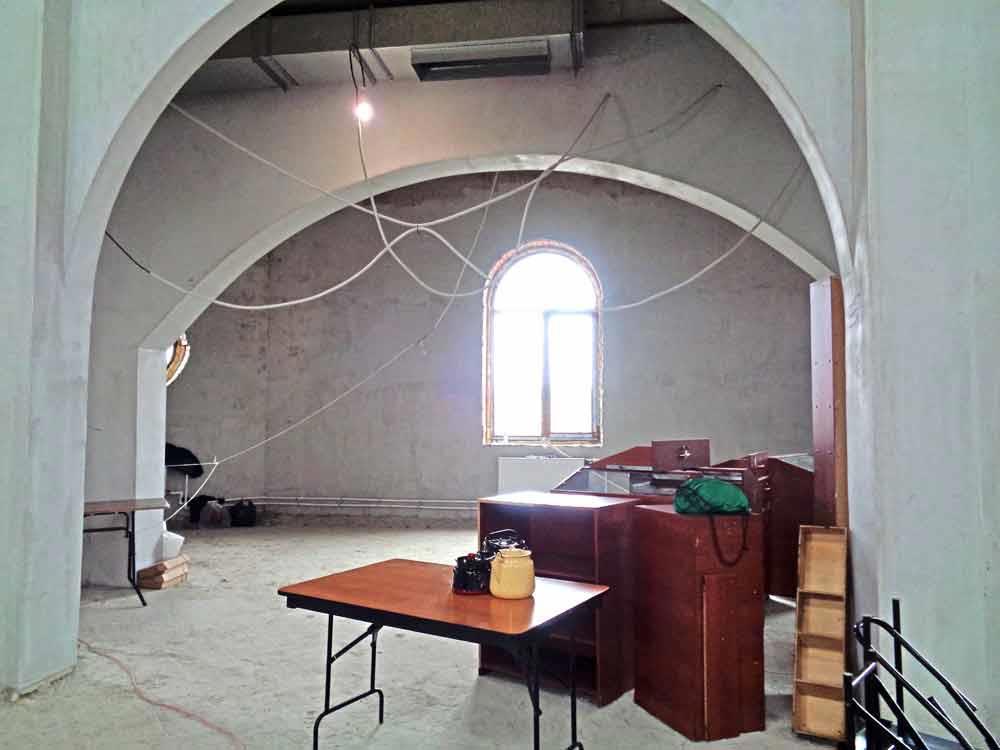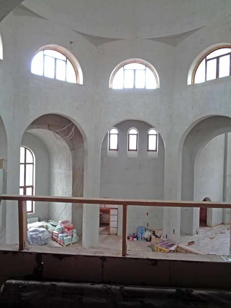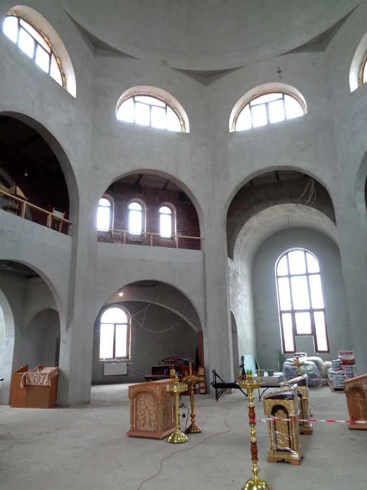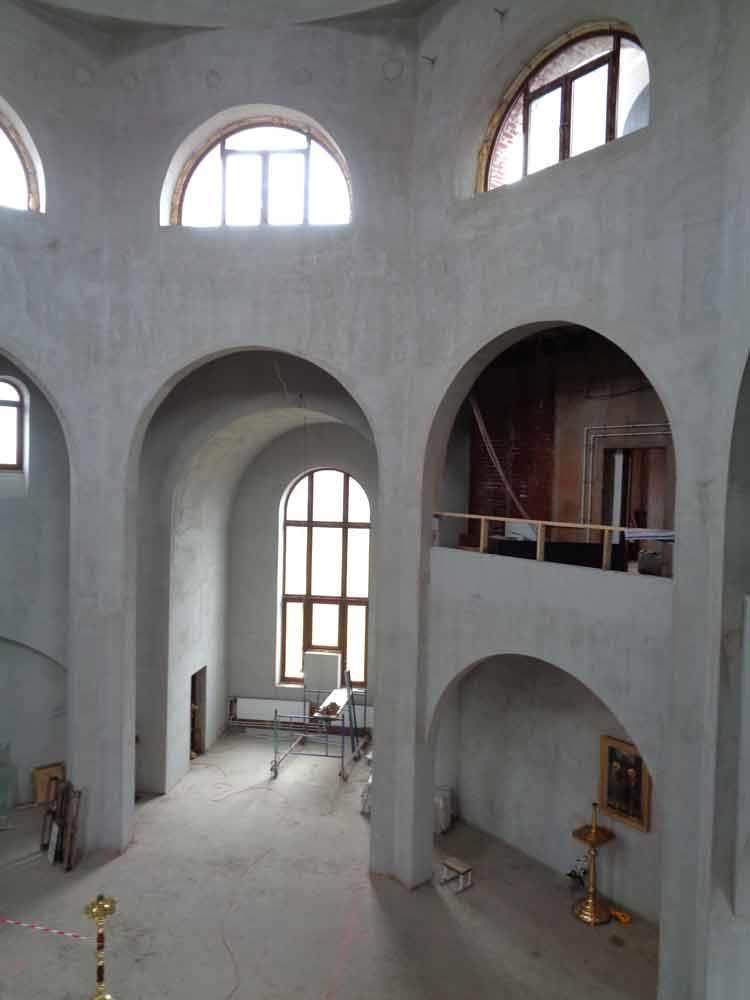 В прошедшее воскресенье нам удалось проникнуть на второй этаж нашей строящейся церкви. Её, как и положено, строят на пожертвования, поэтому очень-очень медленно, уже даже не скажу точно, сколько лет. Сперва служили в подвальном храме, а сверху ещё ничего не было. Потом выстроили первый этаж и стали служить в нём. И наконец, закончили собирать второй этаж и верхний храм. Очень люблю лазать по таким недостроенным зданиям, когда они ещё пустые - они поражают своим объёмом.