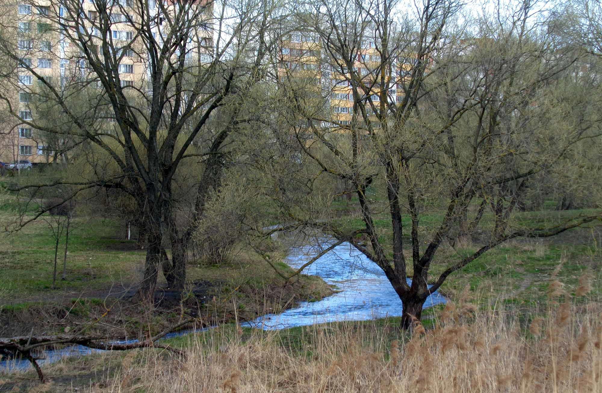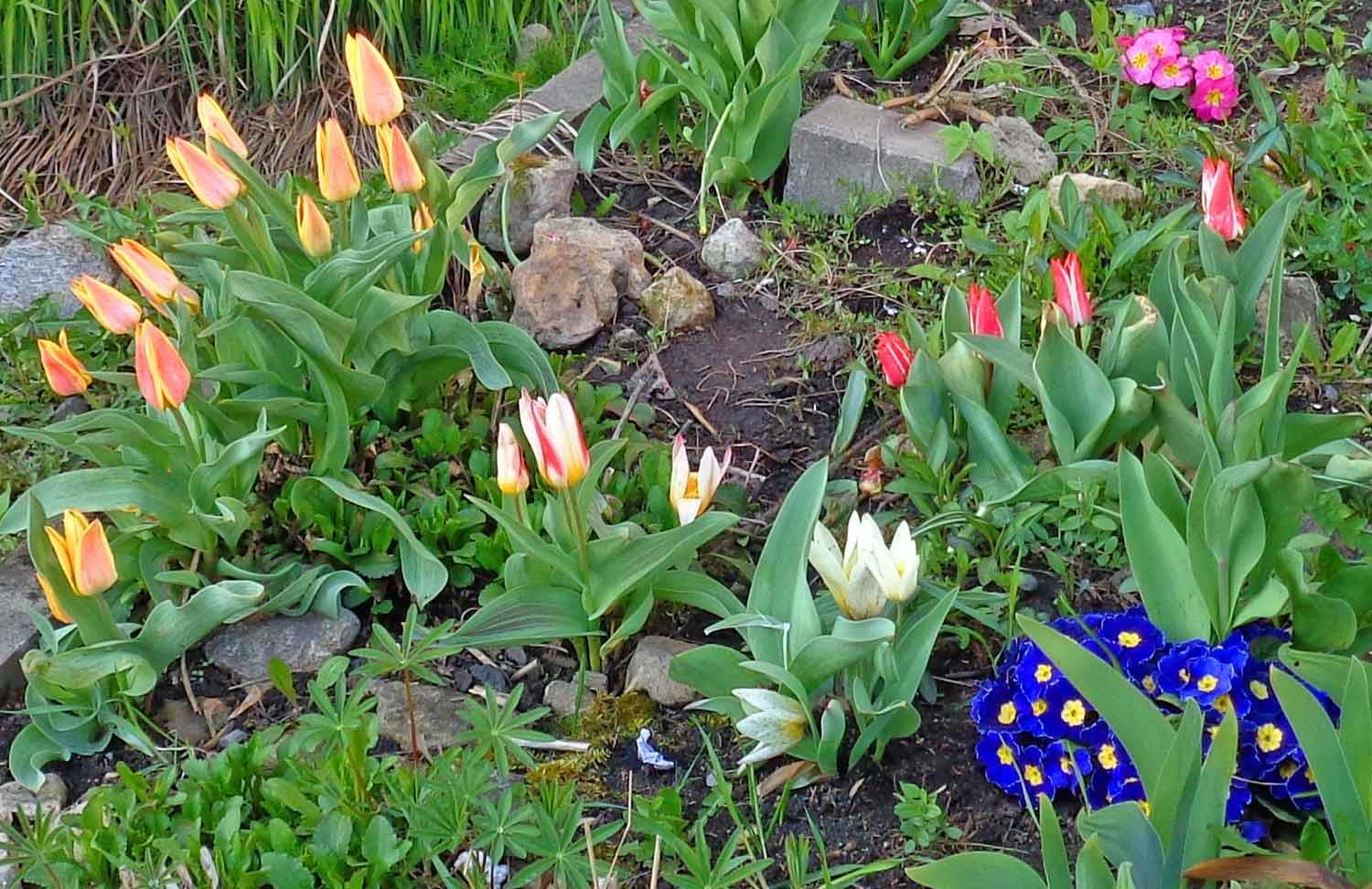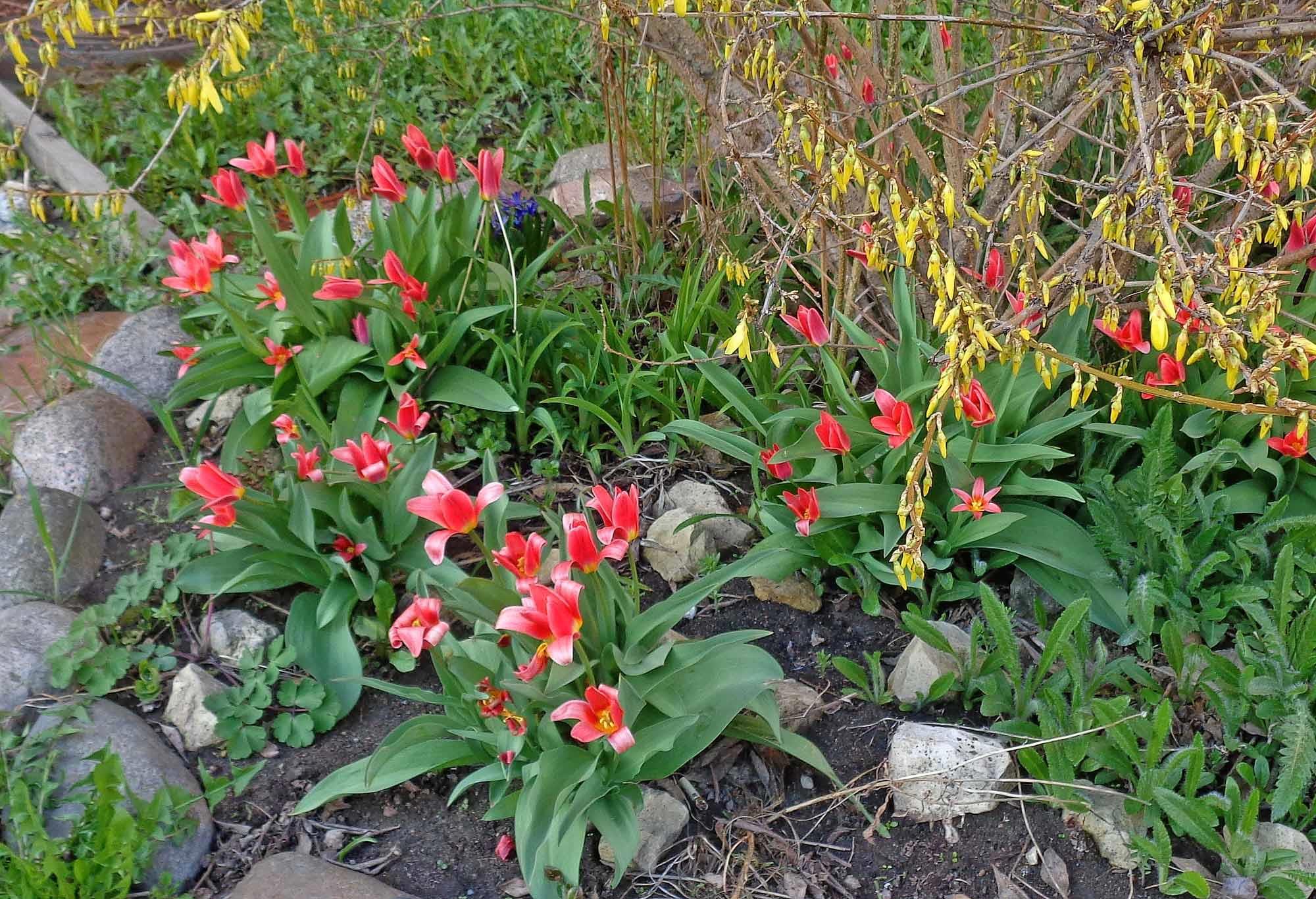 И ещё немножко так (жёлтые висюльки - это зацветает Форзиция Жиральда, у неё сперва появляются цветы, а только после них - листья):