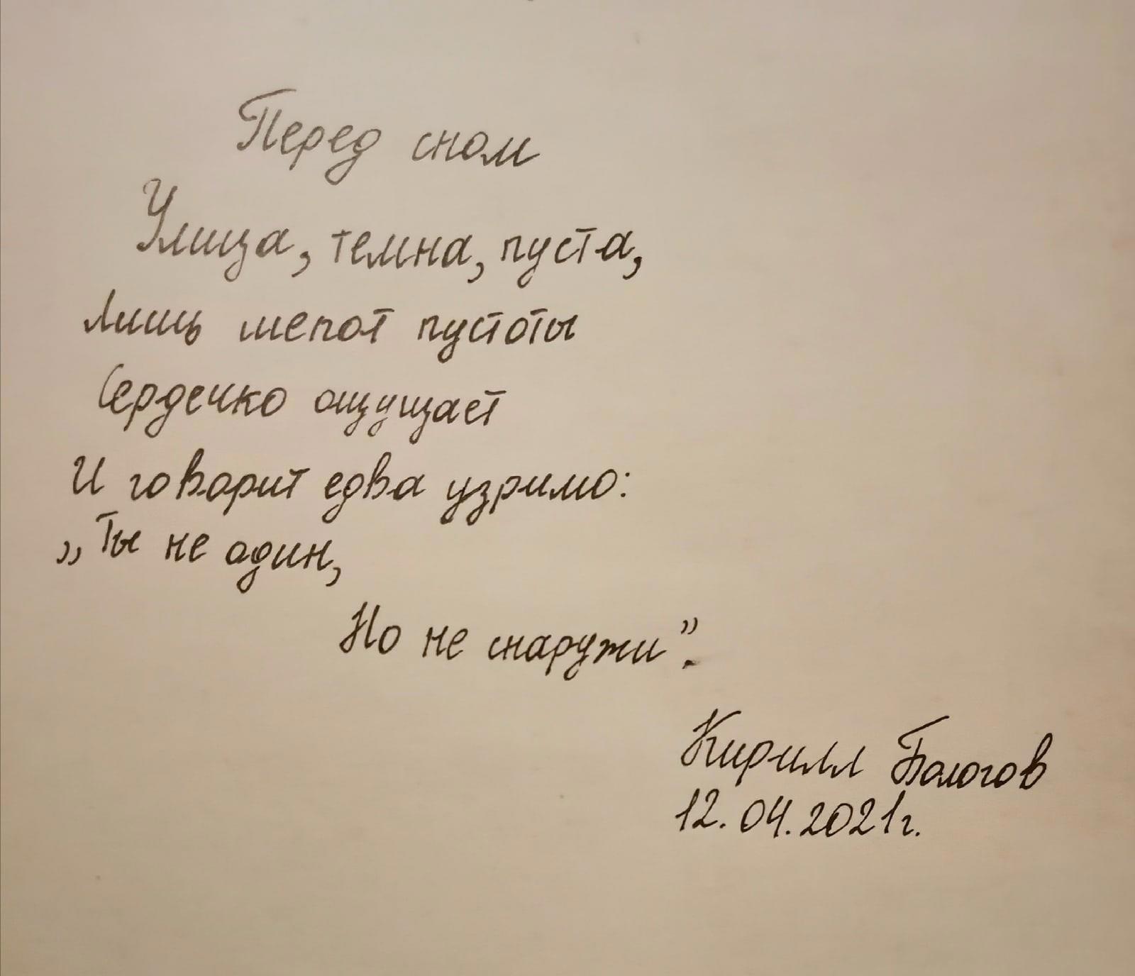 Автор: Кирилл БологовНа днях перед сном пришло желание писать, да и строчки для стиха сразу сложились. Так и появилось то, что вы можете увилить здесь.