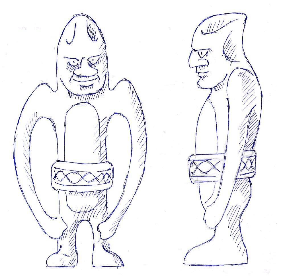 Странная фигурка. Керамика. Цвет ровный, даже не красно-коричневый, а скорее оранжевый. Она была не похожа ни на что. Фигурка человека вроде бы, вот только руки длинноваты, ноги короткие, да и лицо какое-то неправильное, да вообще голова странная… ушей нет почему-то. Но это всё были мелочи. Главная странность таилась в «огуречке» туловища. Его передняя часть была явной крышкой. Чёткий ровный стык. Крышка хорошо притёрта – не шелохнётся. Это немного не вязалось с просто нарочитой грубостью самой фигурки. Будто её сделали наспех, небрежно и неумелыми руками. Хотя чем дольше смотришь на неё, тем больше кажется, что сделано всё настоящим мастером, который просто очень старательно изображал неумелость и примитивность работы. Но самой большой проблемой было кольцо, одетое на фигурку на манер пояса. Странный желтовато-красный металл. Точно – не золото. Скорее бронза… но почему-то следы коррозии минимальны. Кольцо простенькое с простеньким узором в виде двойной спирали. Однако качество изготовления очень высокое. Всё такое ровненькое, гладенькое. Будто это серийное изделие, сделанное на серийном заводе. И это самое кольцо намертво держалось на животе фигурки и не давало открыть крышку: