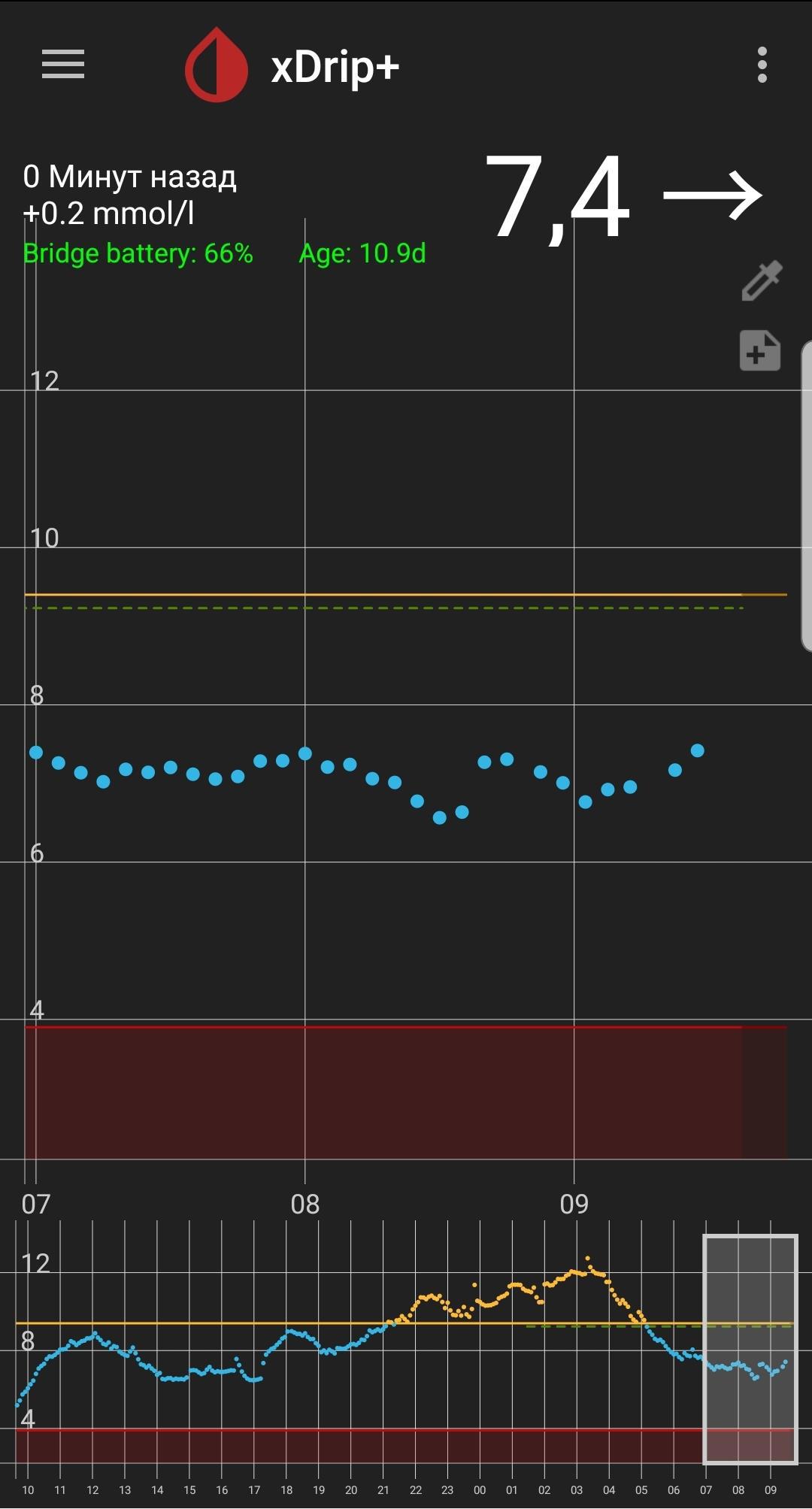 Автор: Елена МихалёваСегодня утром открыла активность читателей на АТ и, глядя на особо высокий участок графика, сонно подумала, что сахар в крови был высоковат. Потому как график сахаров сына, который с мониторинга передаётся на телефон, выглядит вот так:
