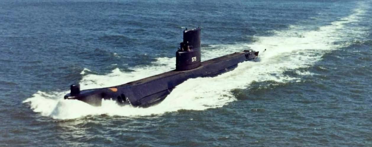 Куда меньше людей знает, что в конце 50-х годов американцы выдали задание на проектирование атомных подводных лодок сразу двум фирмам. И в США сделали не одну опытную атомную субмарину, а целых две. Вторая называлась SSN-575 «Seawolf» и была спущена на воду в 1957 году. Вот фотография этой лодки: