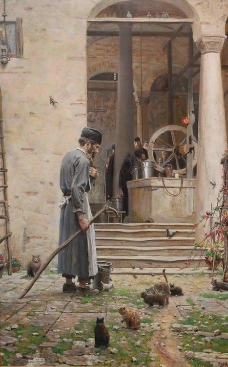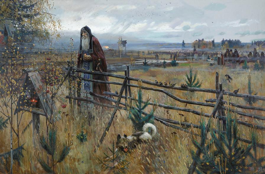 И последняя, самая тёплая картина, "Силуан Афонский". Посмотрите, сколько котиков!