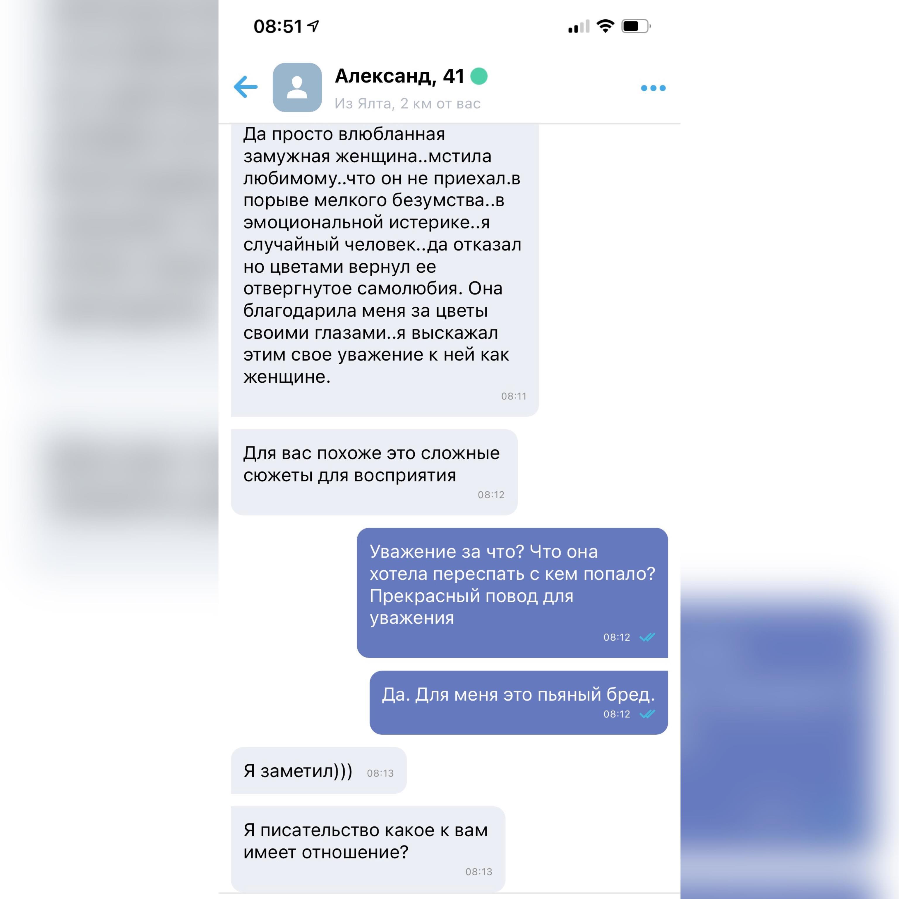 Цветы ей, заметьте, из уважения, всучил прохожий, отказавшийся ее трахать.