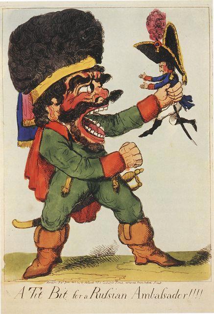 Карикатура появившаяся после достойного ответа русского посла французскому консулу, что в ответ на очередную грубость Бони, Россия выступит на стороне Великобритании. (В Лондоне очень этого хотели.)