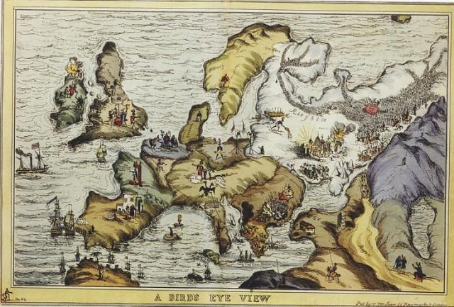 сатирическая карта Европы периода войны с Турцией. Ледяные просторы России заполнены армиями медведей и казаков.