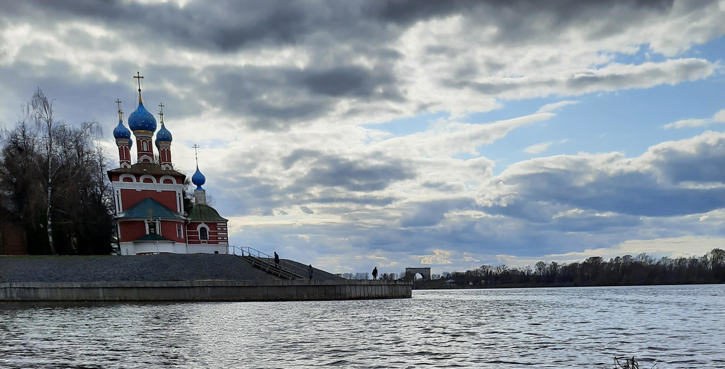 Дальше наш путь по бездорожью лежал в Ярославскую область, в город Углич. О нем я писал в предыдущем посте, так что особенно распинаться не буду. Само название города происходит то ли от слова «уголь», то ли от того, что Волга делает угол в сторону Ярославля. Это еще древние картосоставители с дрона заметили. Но сам город известен тем, что в стенах его кремля был убит младший сын царя Ивана Грозного, царевич Дмитрий. Смерть которого послужила прологом к Смутному времени, которым воспользовался для прихода власти Бориса Годунова. Если интересно, то найдите в интернете «Угличнское дело», которое вели Василий Иванович Шуйский и Андрей Петрович Клешнин. На месте убийства ребенка построен храм Дмитрия на крови, а сам царевич возведен в ранг святых, теперь его мощи находятся в Архангельском соборе московского Кремля.