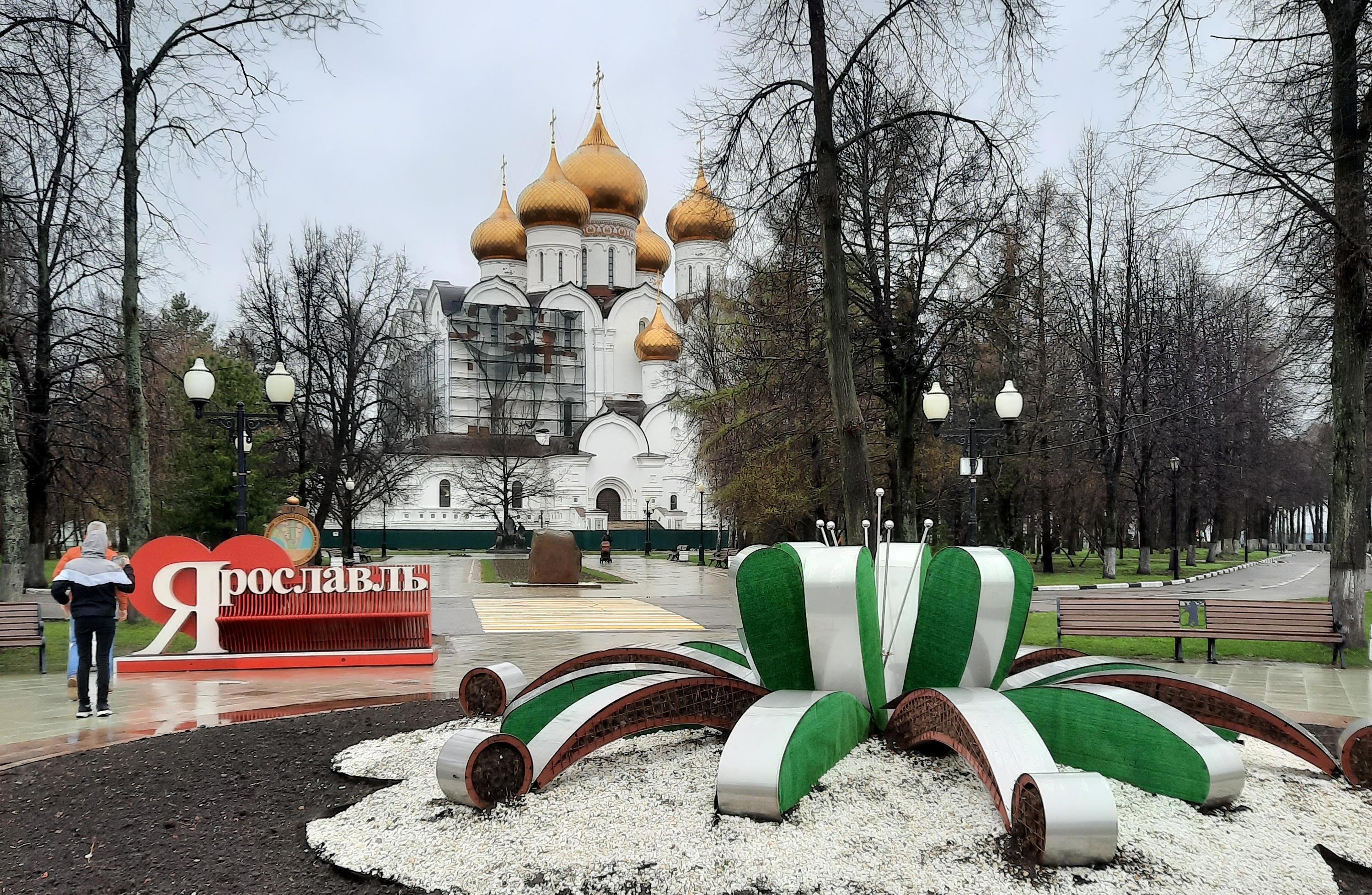 Ярославль в этот раз встретил нас дождливой погодой. Так что большую часть прогулки мы ходили под зонтом, но всё равно промокли как цуцики (или они мёрзнут?). Пожалуй накидаю вам видов города, которые хорошо смотрятся в дождливую погоду.