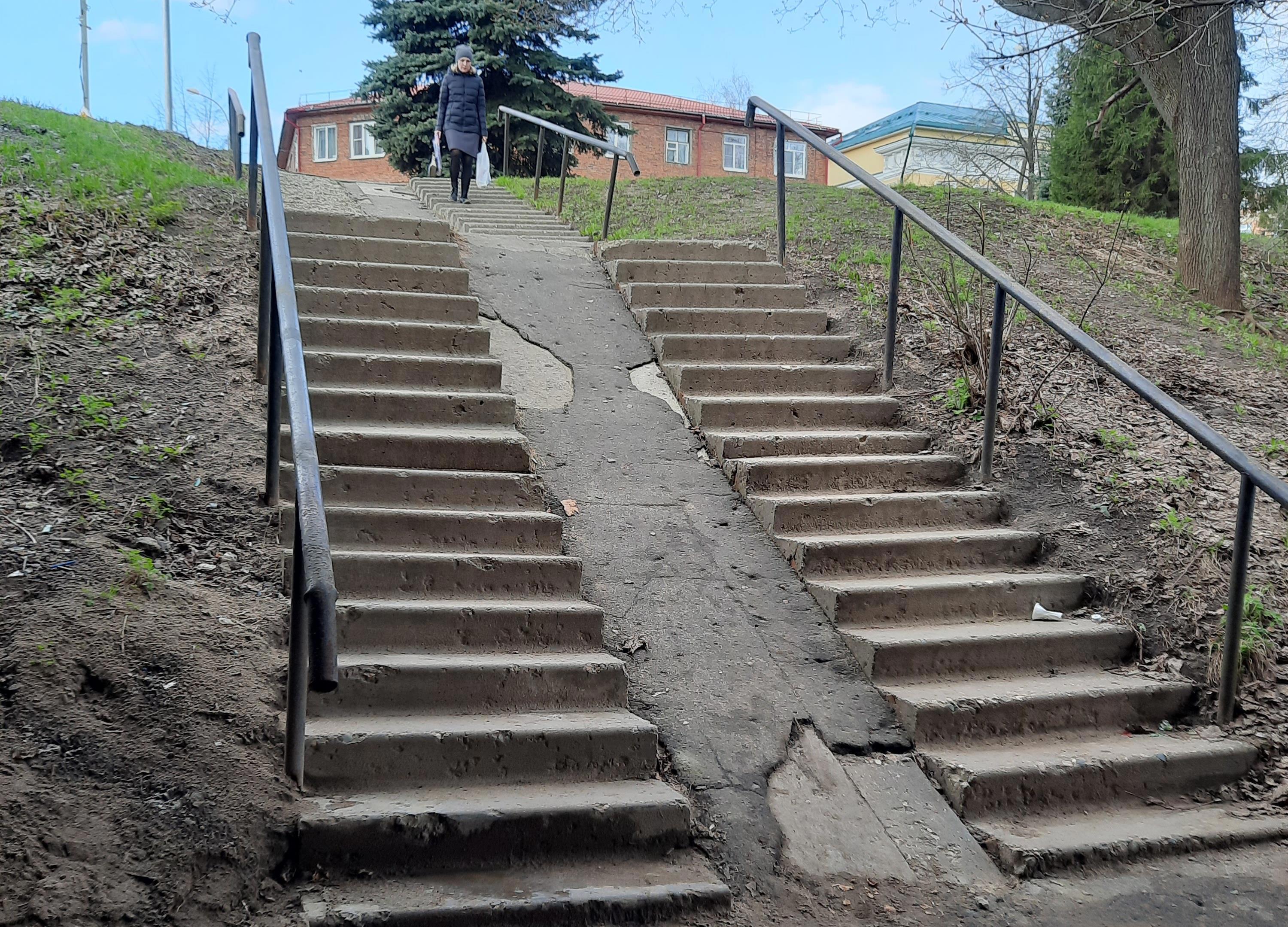 Как замечание местной администрации, оставлю тут фото лестницы с экстремальным для инвалидов спуском. Есть еще над чем поработать местным коммунальщикам.