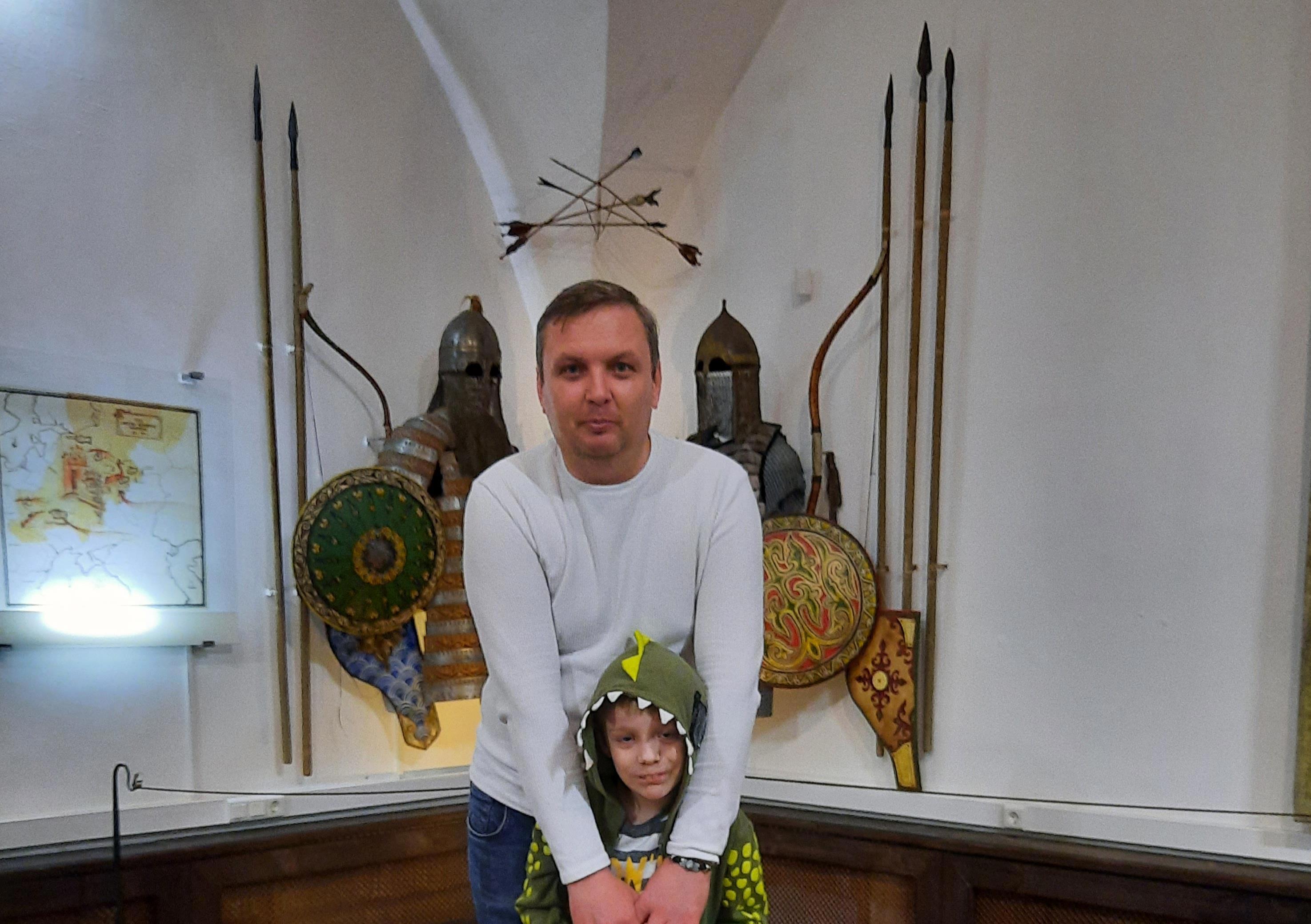 Еще у них есть ролевики, поэтому нам дали примерить шлем и выдали боевой топорик