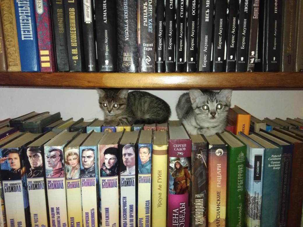 А это наши подниматели настроения — частенько сидят на коленях, когда я пишу. Но я держусь, и их няшность на тексте не сказывается!